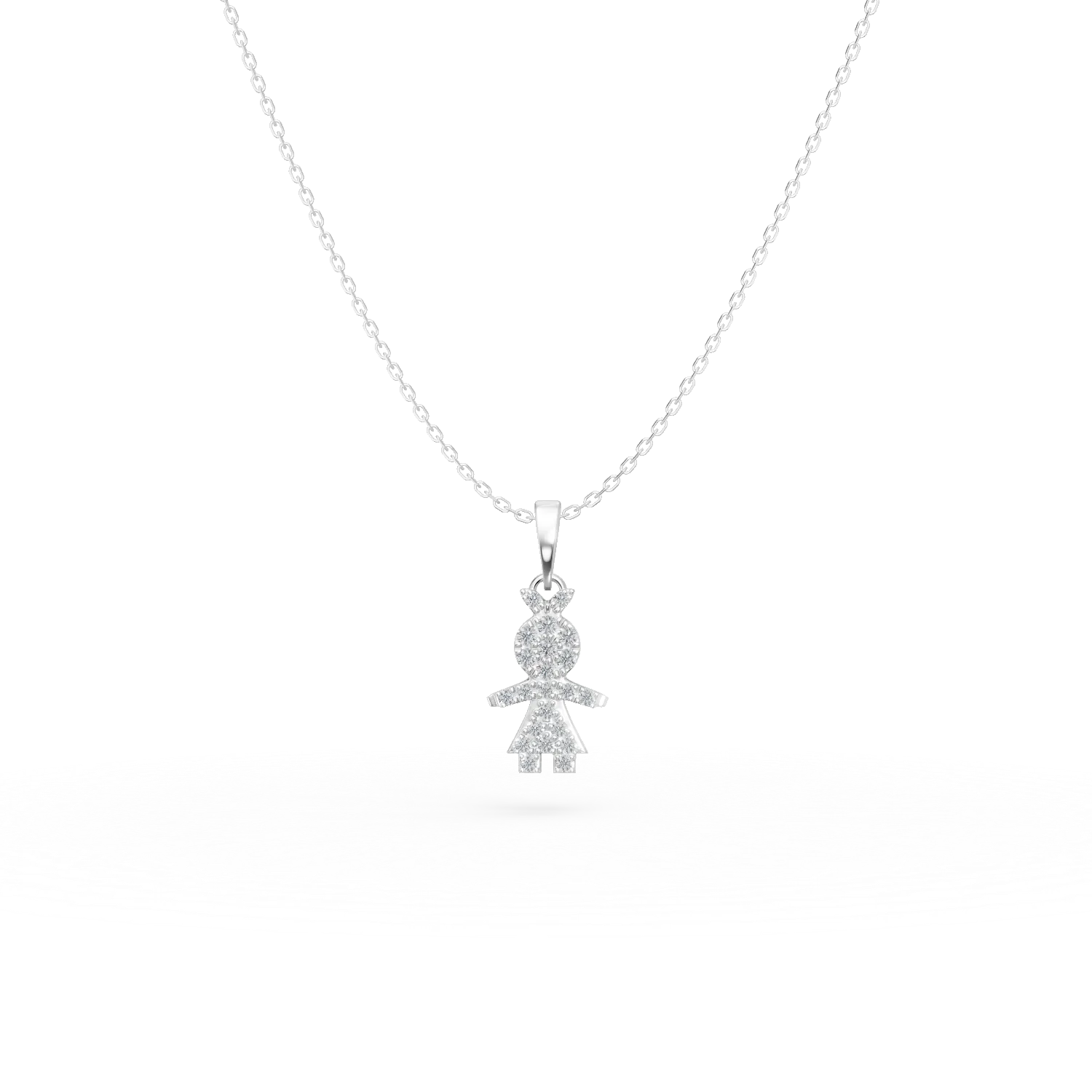 Lant cu pandantiv copil din aur alb cu diamante de 0.12ct
