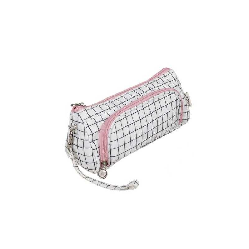 Penar scolar tip borseta, 2 compartimente cu fermoar, carouri alb-negru, 6x11x22 cm