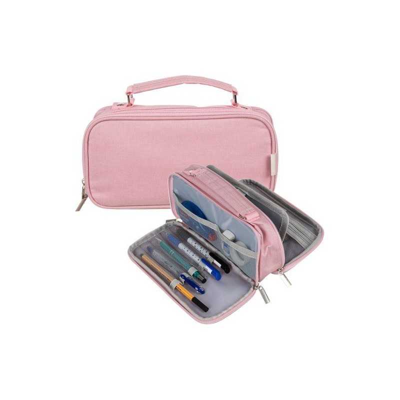 Penar cu 2 compartimente, extensibil, clapeta interioara tip organizator, 11x7x23 cm, roz