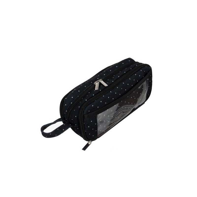 Penar scolar, neechipat, 2 compartimente, fermoar, agatatoare, 11.5x7.5x23 cm, negru