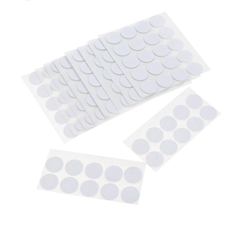 Buline dublu adezive, diametru 4 cm, baza solvent, 1 mm, set 10 bucati