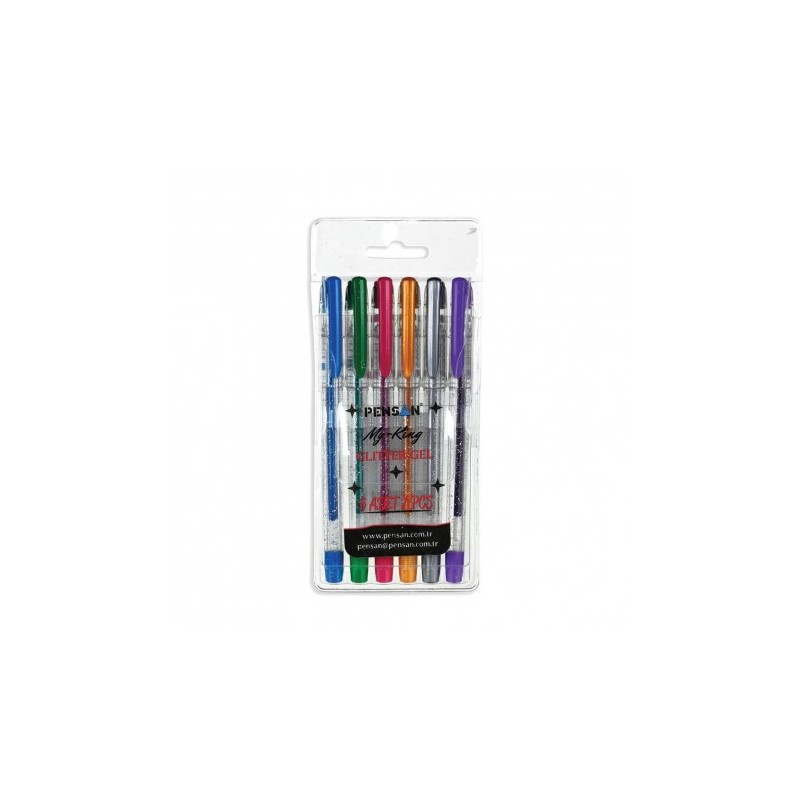Set 6 pixuri cu gel neon, colorate, varf de 0.8 mm, Pensan