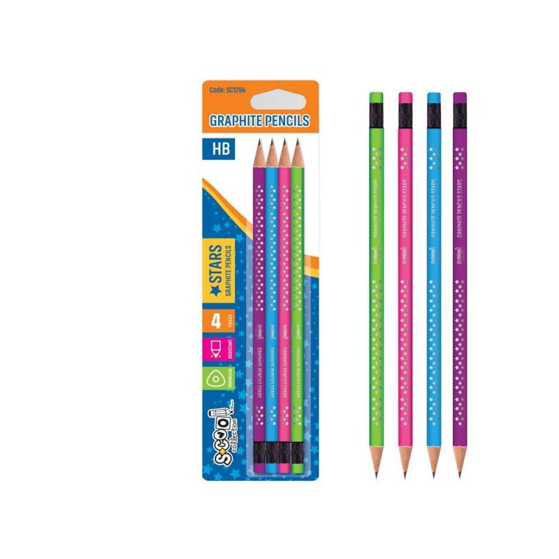 Creion grafit HB, Shining Star, forma triunghiulara, set 4 culori