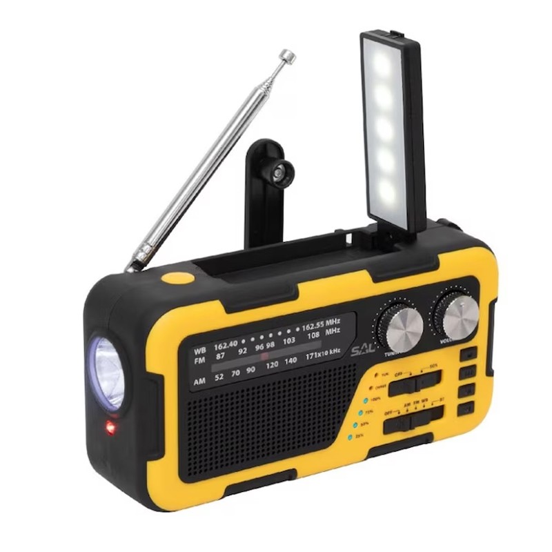 Radio portabil solar, AM, FM, WB, Bluetooth, panou solar, SD, USB, BT, alarma SOS, acumulator 4.000 mAh