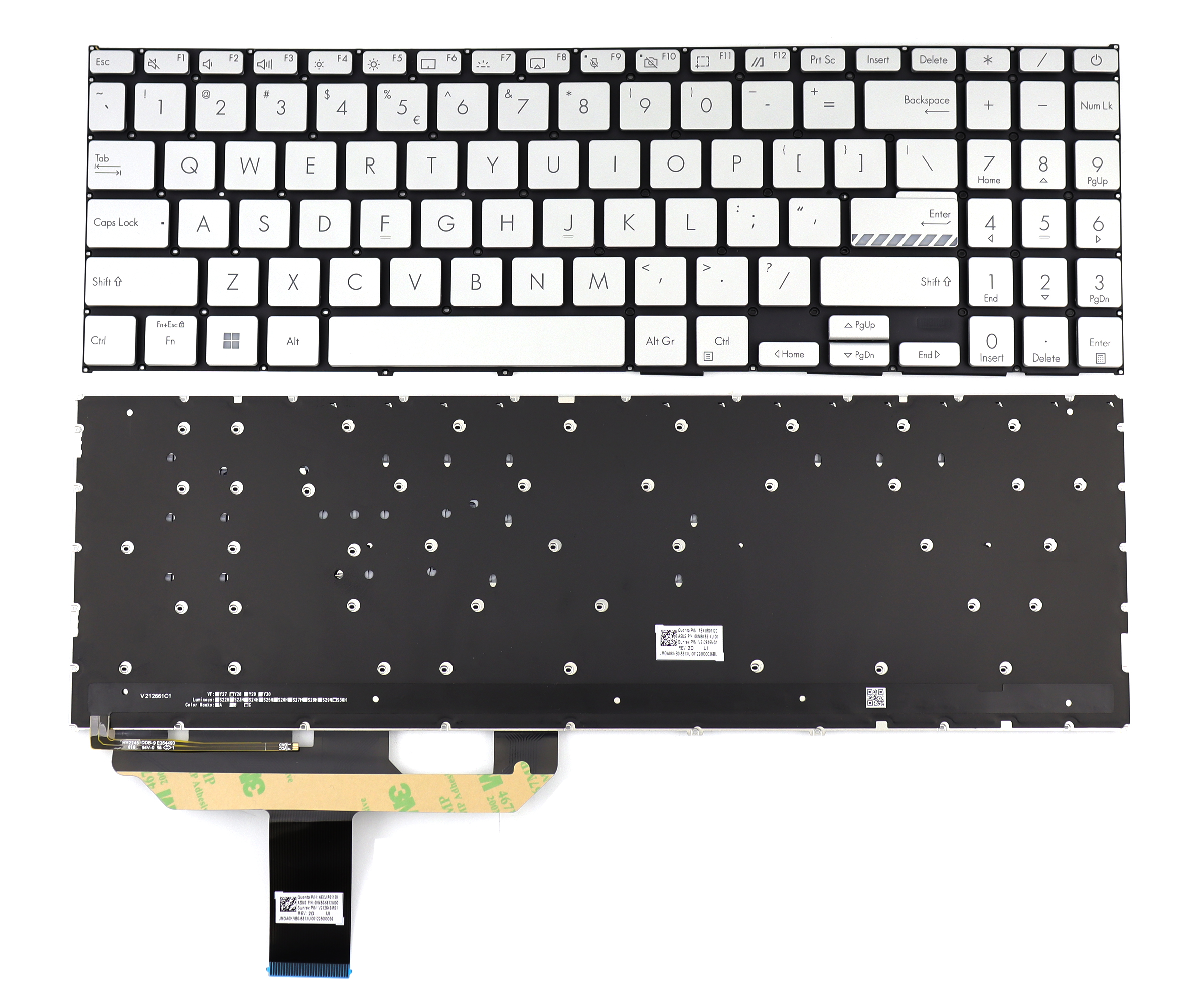 Tastatura Argintie Asus AEXJIU01010 iluminata layout US fara rama enter mic
