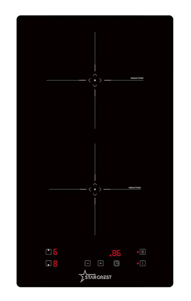 RESIGILAT - Plita incorporabila STARCREST SIH-3030, Inductie, 3300 W, 2 zone de gatit, 9 trepte de putere, Touch control, Timer, Sticla Neagra