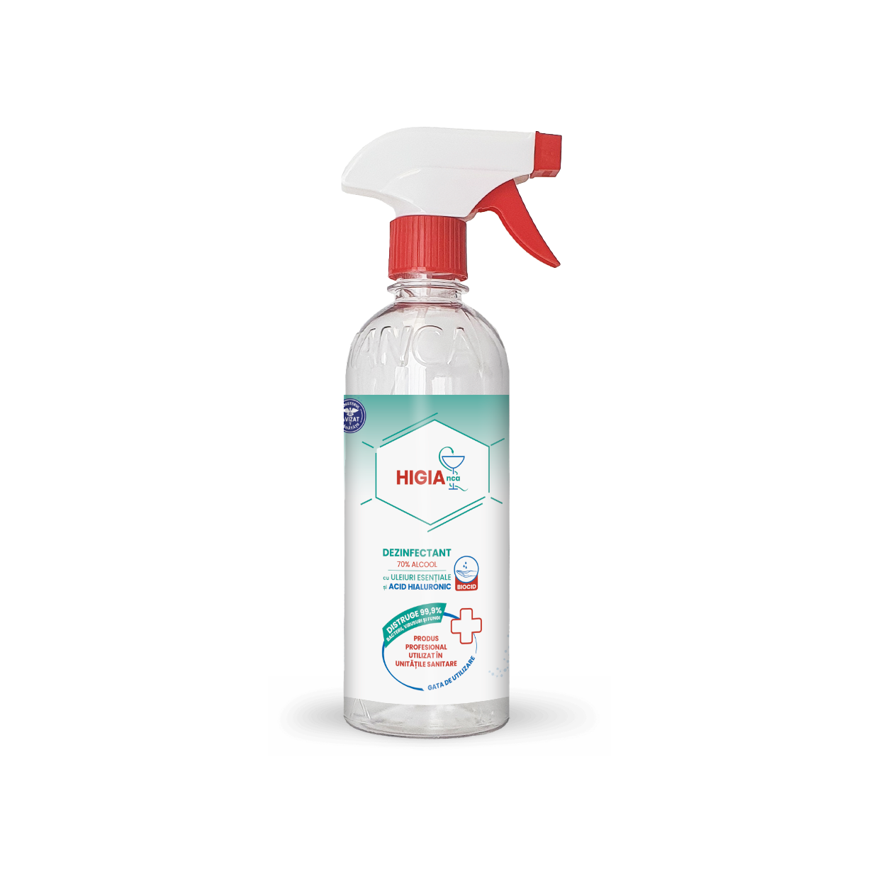 DEZINFECTANT SOLUTIE 70% ALCOOL CU U.E. SI ACID HIALURONIC 500 ml - HIGIAnca
