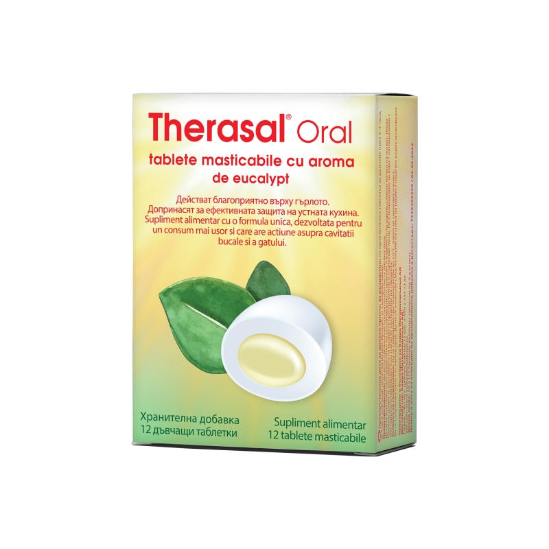 THERASAL ORAL tablete masticabile cu aromă de eucalipt