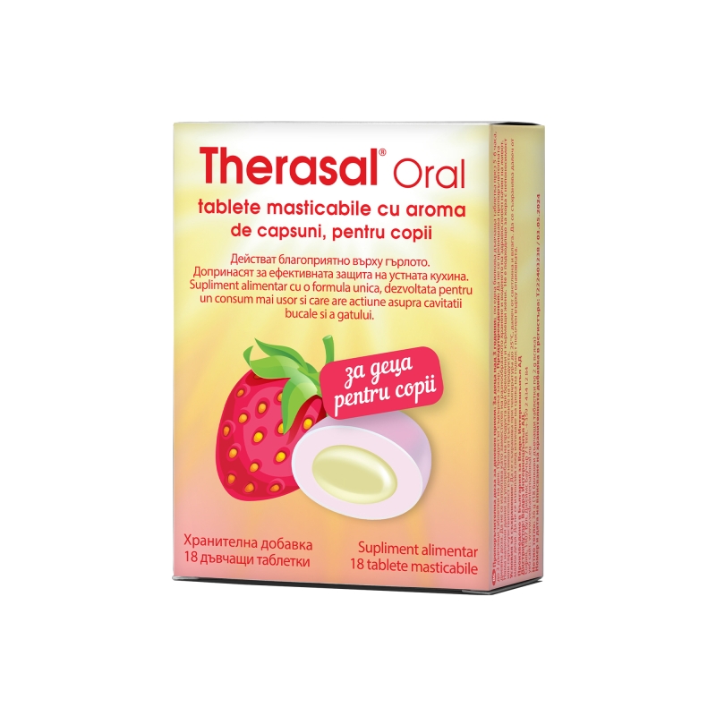 THERASAL ORAL, tablete masticabile pentru copii cu aromă de căpșuni