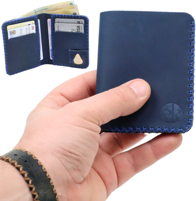 Portofel, personalizabil, din piele naturala, Jack M, Albastru