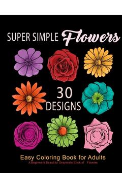 Super Simple Flowers: Easy Coloring Book for Adults: A Beginners Beautiful Grayscale Book of Flowers: 30 Prints of Lovely Whimsical Floral D - Coloring Evangelists