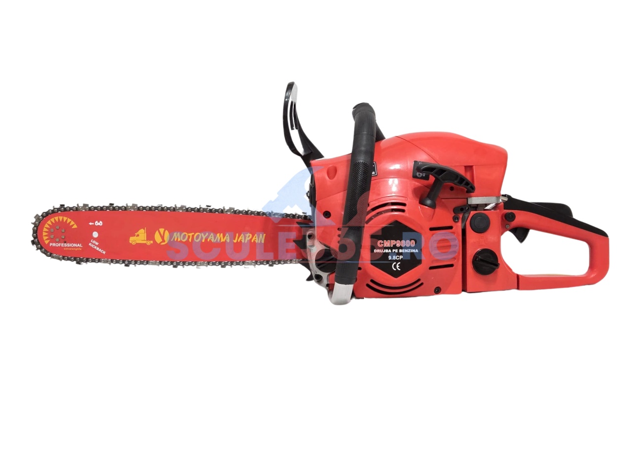 8.5 CP *MEGA* Drujba pe benzina 9.8cp, 58cmc, 12000rpm, 400mm, MOTOYAMA JAPAN 9800 CMP9800 Drujba pe benzina MOTOYAMA JAPAN CMP9800 este un motofierastrau profesional cu performante de top, conceput pentru utilizatorii care au nevoie de putere maxima, fiabilitate si precizie. Cu un motor de 9.8 cai putere si o capacitate de 58 cmc, acest model este ideal atat pentru activitati forestiere, cat si pentru lucrari casnice solicitante. Functioneaza la o turatie de pana la 12000 rpm si este echipata cu o lama de 40 cm, optimizata pentru taieri eficiente si curate, chiar si in cele mai dificile conditii. Constructia robusta si sistemele avansate precum EasySmartStart si ungerea automata reglabila asigura o utilizare comoda si sigura, cu un nivel redus de efort. Designul ergonomic contribuie la o manevrabilitate excelenta, chiar si in cazul utilizarii prelungite, iar materialele de calitate superioara garanteaza o durata lunga de viata. Aceasta drujba se adreseaza atat profesionistilor din domeniul exploatarilor forestiere, cat si celor care cauta un echipament de incredere pentru activitati intense in gospodarie sau constructii. Specificatii tehnice: Putere motor: 8.5CP Capacitate cilindrica: 58cc Turatie maxima: 12000 rpm Viteza lant: 3000 - 12000 rpm Lungime lama: 400 mm Sistem ungere: automat, ajustabil Capacitate rezervor combustibil: 550 ml Capacitate rezervor ulei: 260 ml Greutate: aproximativ 5.5 kg Utilizari: Taierea bustenilor grosi si a lemnului de foc Lucrari forestiere si de toaletare arbori Activitati de constructie din lemn sau dezafectare structuri Gospodarii care necesita un motofierastrau de mare putere pentru utilizare regulata Operatiuni de curatare a terenurilor sau defrisari Drujba pe benzina MOTOYAMA JAPAN CMP9800 este o alegere inspirata pentru cei care cauta performanta si durabilitate la standarde inalte, fiind conceputa pentru a face fata celor mai solicitante sarcini, indiferent de frecventa sau intensitatea utilizarii. Datorita motorului puternic, a componentelor rezistente si a tehnologiilor moderne integrate, acest motofierastrau se impune ca un partener de incredere atat pentru profesionisti, cat si pentru utilizatorii exigenti din mediul casnic sau industrial.