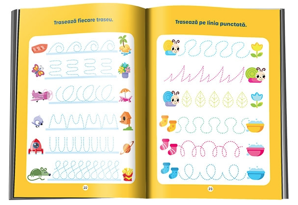 Ti-ai dorit vreodata ca micutul tau sa nu mai priveasca invatatul ca pe o corvoada? Colectia Invatare prin joc iti vine in ajutor! Rezolvand activitatile distractive de pe paginile amuzant ilustrate ale acestor caiete de lucru, copilul tau va deprinde abilitati care-i vor fi de mare folos la gradinita si, mai apoi, la scoala: atentia, concentrarea si perspicacitatea.Pregatire pentru scris are drept scop familiarizarea copilului cu activitatile de trasare, care vor consolida exercitiile de scriere de la gradinita si de la scoala.