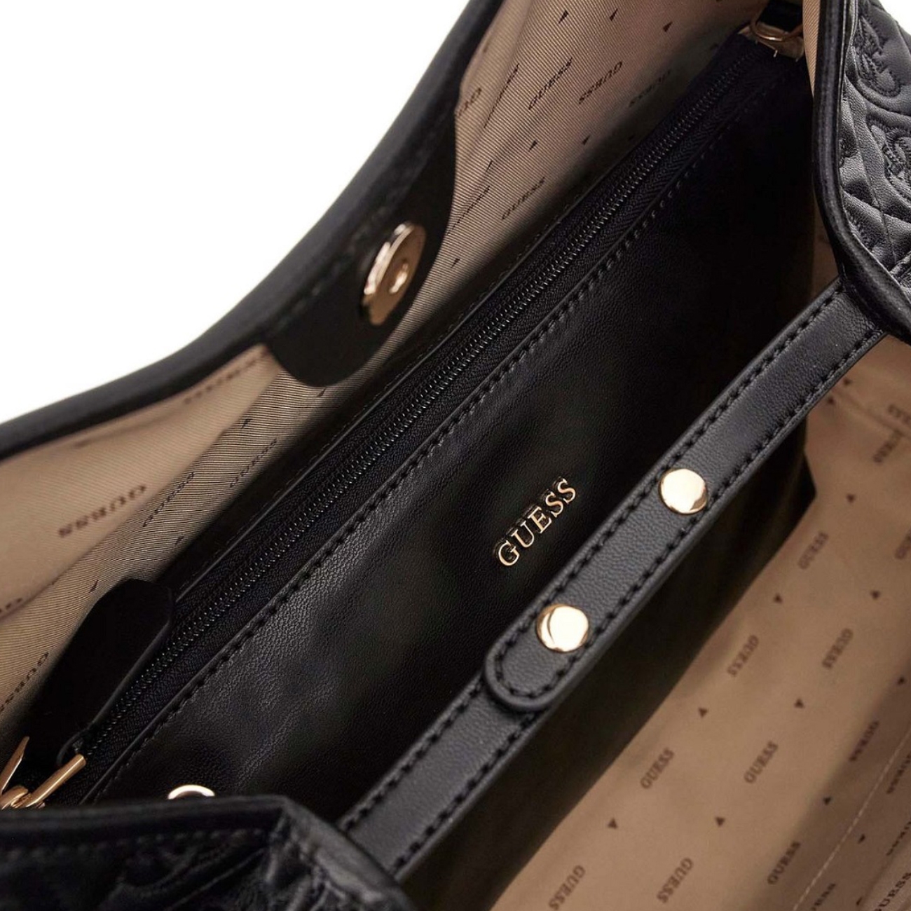 Geantă de mână Guess, confecționată 100% din poliuretan, cu exterior matlasat și logo embosat în relief pe toată suprafața. Modelul include o geantă interioară detașabilă tip plic, ce poate fi purtată separat. Dispune de două barete lungi pentru purtare comodă pe umăr și are un design modern și versatil, ideal pentru zi cu zi.