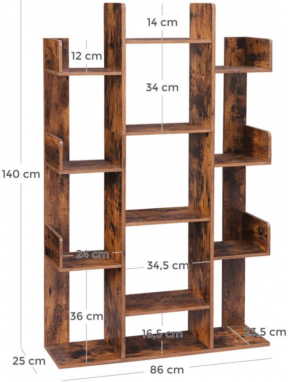 Detalii produs: Culoare: maro vintage Material: PAL din lemn, furnir melaminat Dimensiune: 86 x 25 x 140 cm (L x l x H) Greutate: 18,9 kg Max Capacitate de încărcare statică pe nivel: 10 kg Max Capacitate de încărcare statică: 80 kg Conținut: 1 x raft pentru cărți 1 x protecție împotriva înclinării 1 x geantă pentru accesorii 1 x manual de instrucțiuni (germană, engleză, franceză, spaniolă, italiană)
