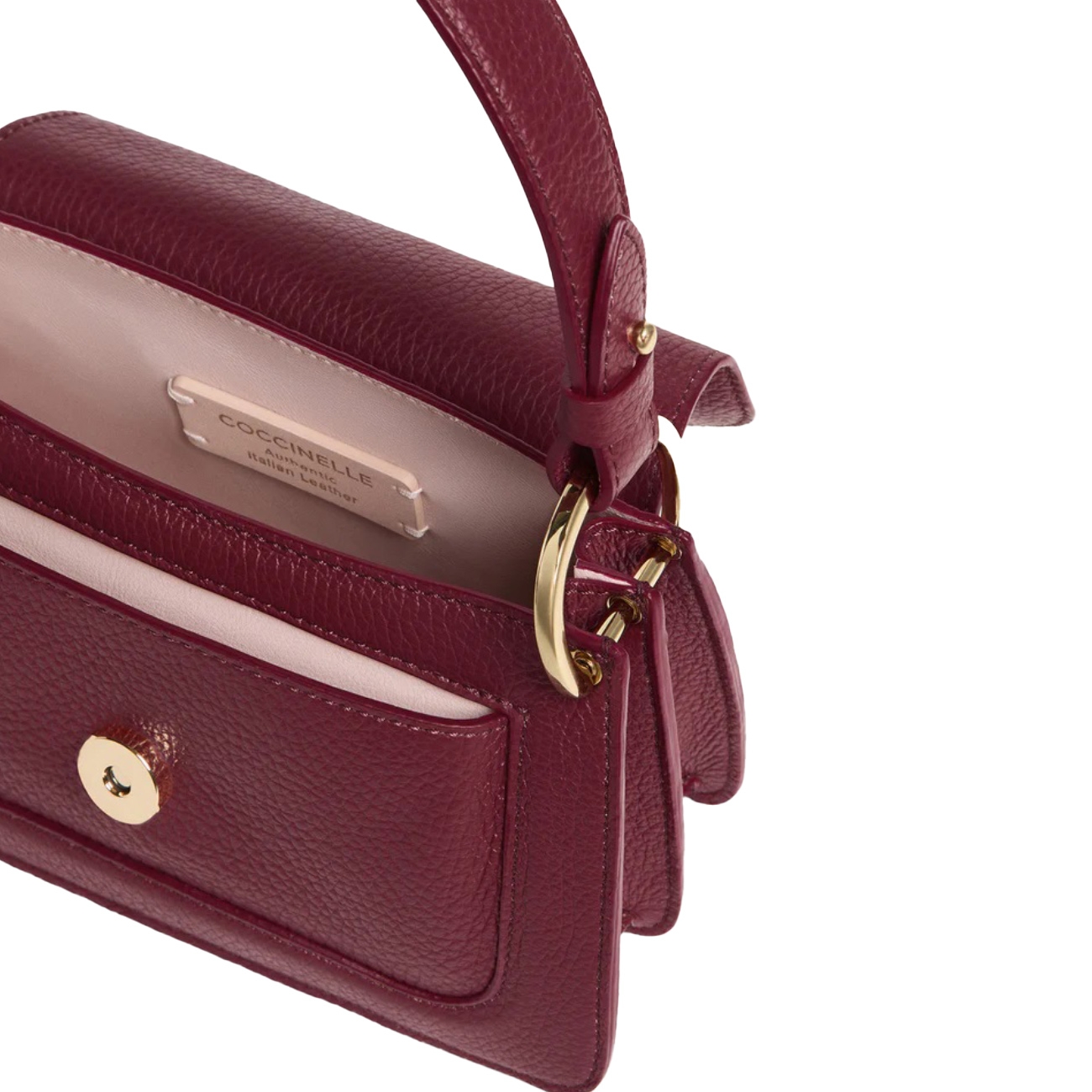 Coccinelle este un brand italienesc, originar din Parma, ce creează accesorii pentru viața de zi cu zi a femeilor din întreaga lume. Brandul are un stil contemporan și se mândrește cu produse calitative, lucrate cu cea mai mare atenție la detalii. Produsele Coccinelle reflectă femeia modernă și îi permite acesteia să își scoată în evidență stilul și individualitatea. C-Me Handbag este un model elegant și modern, creat din piele netedă de calitate superioară, care îmbină perfect funcționalitatea și stilul. Logo-ul este reinventat cu litera C din Coccinelle, care se înfășoară și îmbrățișează plectrul – un element iconic al brandului, simbolizând legătura între trecutul și prezentul unei femei. Designul se remarcă prin linii geometrice și curbe elegante, iar construcția cu balene adaugă un echilibru între funcționalitate și subtilitate.