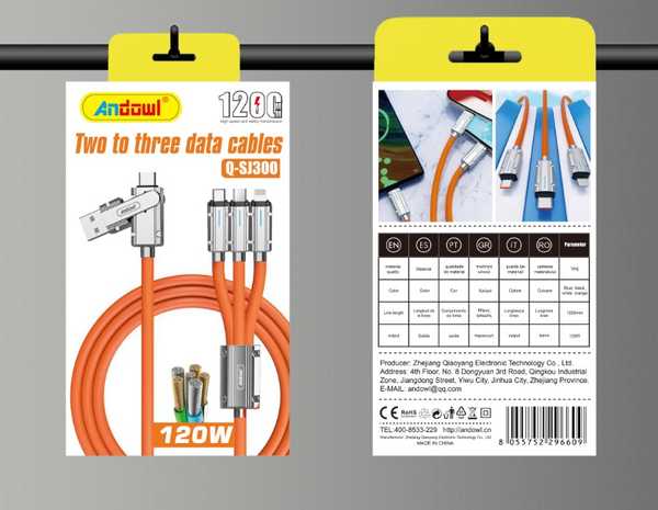 Cablu Engros multifunctional, de incarcare, USB - USB tip C, lightning, Micro USB, 1.2 m, Q-SJ300