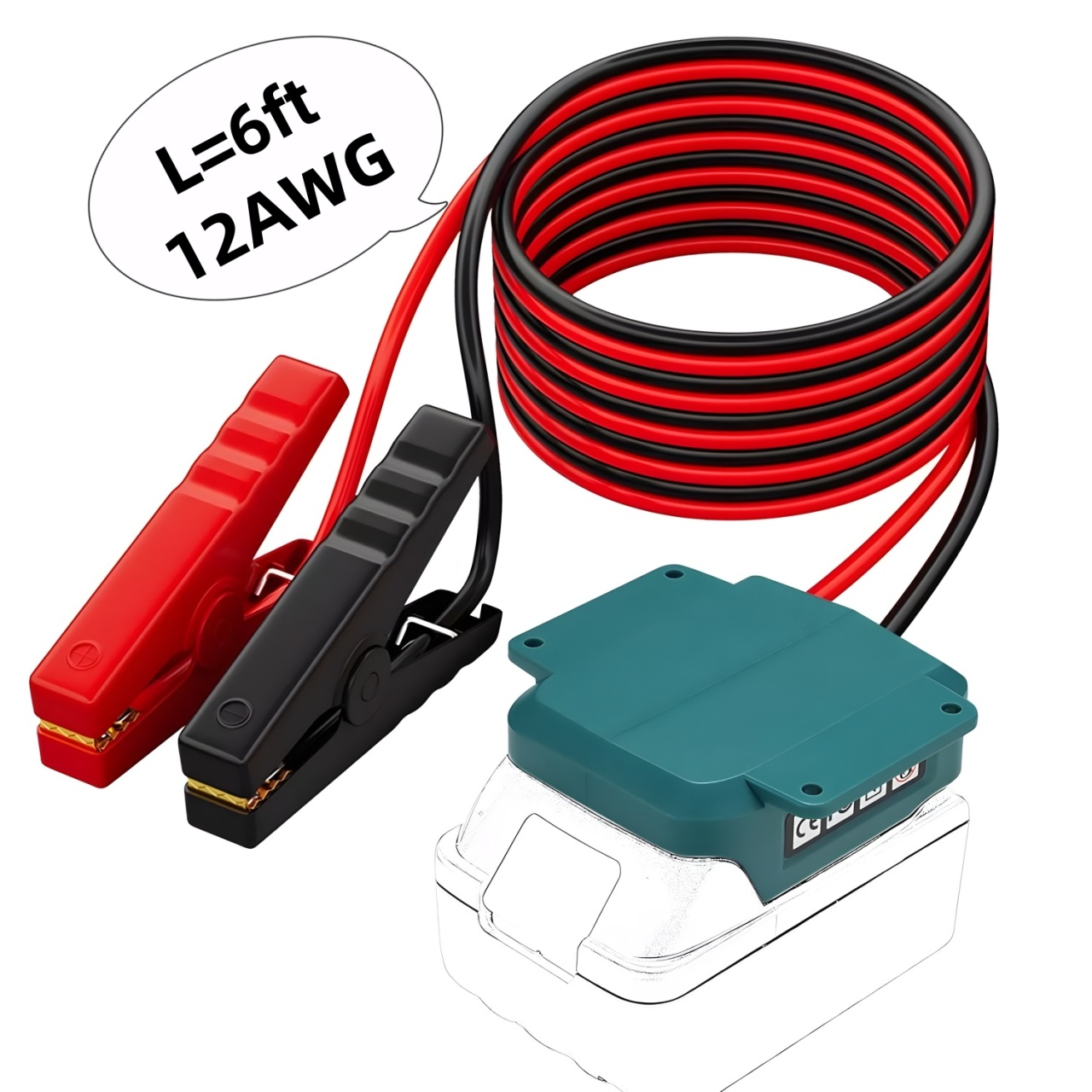 Transforma o baterie Makita de 18V intr-o sursa portabila de alimentare pentru pornirea motorului auto! Acest cablu inteligent este dotat cu adaptor compatibil cu baterii Makita (modele BL1815, BL1820, BL1830, BL1840, BL1850, BL1860) si include clesti robusti, cablu siliconic de inalta calitate si mufe cuprate pentru eficienta maxima. ? Compatibilitate : Functioneaza cu toate bateriile Makita 18V Li-Ion, oferind o solutie alternativa pentru pornirea masinii in situatii de urgenta, camping, off-road, ateliere mobile etc. ? Detalii tehnice: Tensiune alimentare : 18V Lungime cablu : 1.8 metri Material cablu : fir din cupru cositorit cu izolatie din silicon, rezistenta la temperaturi de la -60°C pana la +200°C Sectiune fir : 8AWG – suporta pana la 3000V Greutate : 0.372 kg Material carcasa : ABS durabil si rezistent la socuri Clesti cu dimensiuni : 97 x 66 x 16 mm, cu deschidere de 55 mm ? Caracteristici principale: Clesti mari cu contacti metalici puternici – prindere ferma pe bornele bateriei Cabluri groase pentru conductivitate si siguranta ridicata Design portabil – ideal pentru interventii rapide fara a fi nevoie de baterie auto suplimentara Constructie ergonomica si robusta, cu izolatie anti-soc ? Pachetul contine: 1x Adaptor pentru baterie Makita 18V (fara baterie inclusa) 1x Cablu 1.8m rosu/negru din silicon cu clesti crocodil ⚠️ Atentie : Bateria Makita nu este inclusa in pachet! Produs destinat pentru utilizare in regim hobby, nu pentru pornirea motoarelor de capacitate mare (ex: camioane). ✅ Utilizari recomandate : Pornire auto de urgenta Alimentare temporara pentru echipamente DC 18V Activitati outdoor: camping, pescuit, drumetii Interventii rapide in service-uri mobile