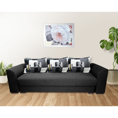 Canapeaua Lindo este o canapea moderna conceputa pentru un stil de viata activ fiind foarte usor de extins si de strans. Canapeaua Lindo este extensibila putand fi utilizata zilnic atat ca si canapea pentru petrecerea timpului liber cat si ca un pat generos pe timpul noptii. Suprafata de dormit este 140 * 190 cm. Canapeaua Lindo are saltele cu plasa de arcuri (tip Relaxa) si burete de densitate mare pentru o rezistenta sporita in timp, iar datorita suprafetei plane care se formeaza atunci cand se extinde asigura un somn odihnitor pe timpul noptii. Atat canapeaua cat si pernele sunt tapitate cu stofa. Canapeaua Lindo are o lada de depozitare generoasa foarte practica atat pentru lenjeria de pat, cat si pentru diverse obiecte pe care le folositi rar. Sezutul in varianta stransa are o latime generoasa de 70 cm si poate fi folosit de o persoana in timpul zilei pentru un pui de somn fara a mai fi nevoie sa extindeti canapeaua. Canapeaua Lindo are 3 perne pufoase foarte utile pentru o sedere cat mai confortabila pe canapea, dar si pentru o pata de culoare. Canapeaua Lindo este foarte usor de montat avand elemente de cuplare rapide. Canapeaua Lindo este prevazuta cu un peretar prins intre brate care ramane la perete atunci cand canapeaua este extinsa si este folosita pentru dormit. Peretarul protejeaza peretele si asigura un confort sporit pentru persoana care va dormi la perete. Dimensiuni canapea Lindo stransa: Lungime: 2350 mm Adancime: 990 mm Inaltime: 710 mm Suprafata de dormitor canapea Lindo: 1400 x 1900 mm