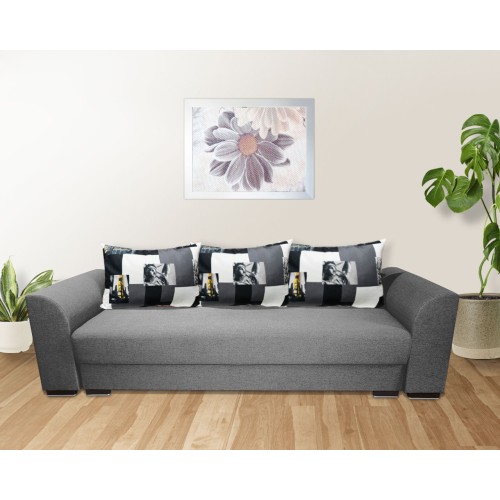 Canapeaua Lindo este o canapea moderna conceputa pentru un stil de viata activ fiind foarte usor de extins si de strans. Canapeaua Lindo este extensibila putand fi utilizata zilnic atat ca si canapea pentru petrecerea timpului liber cat si ca un pat generos pe timpul noptii. Suprafata de dormit este 140 * 190 cm. Canapeaua Lindo are saltele cu plasa de arcuri (tip Relaxa) si burete de densitate mare pentru o rezistenta sporita in timp, iar datorita suprafetei plane care se formeaza atunci cand se extinde asigura un somn odihnitor pe timpul noptii. Atat canapeaua cat si pernele sunt tapitate cu stofa. Canapeaua Lindo are o lada de depozitare generoasa foarte practica atat pentru lenjeria de pat, cat si pentru diverse obiecte pe care le folositi rar. Sezutul in varianta stransa are o latime generoasa de 70 cm si poate fi folosit de o persoana in timpul zilei pentru un pui de somn fara a mai fi nevoie sa extindeti canapeaua. Canapeaua Lindo are 3 perne pufoase foarte utile pentru o sedere cat mai confortabila pe canapea, dar si pentru o pata de culoare. Canapeaua Lindo este foarte usor de montat avand elemente de cuplare rapide. Canapeaua Lindo este prevazuta cu un peretar prins intre brate care ramane la perete atunci cand canapeaua este extinsa si este folosita pentru dormit. Peretarul protejeaza peretele si asigura un confort sporit pentru persoana care va dormi la perete. Dimensiuni canapea Lindo stransa: Lungime: 2350 mm Adancime: 990 mm Inaltime: 710 mm Suprafata de dormitor canapea Lindo: 1400 x 1900 mm
