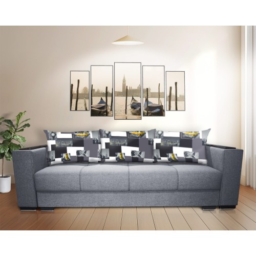 Canapeaua Solis este o canapea moderna conceputa pentru un stil de viata activ fiind foarte usor de extins si de strans. Canapeaua Solis este extensibila putand fi utilizata zilnic atat ca si canapea pentru petrecerea timpului liber cat si ca un pat generos pe timpul noptii. Suprafata de dormit este 140 * 190 cm. Canapeaua Solis are saltele cu plasa de arcuri (tip Relaxa) si burete de densitate mare pentru o rezistenta sporita in timp, iar datorita suprafetei plane care se formeaza atunci cand se extinde asigura un somn odihnitor pe timpul noptii. Atat canapeaua cat si pernele sunt tapitate cu stofa. Canapeaua Solis are o lada de depozitare generoasa foarte practica atat pentru lenjeria de pat, cat si pentru diverse obiecte pe care le folositi rar. Sezutul in varianta stransa are o latime generoasa de 70 cm si poate fi folosit de o persoana in timpul zilei pentru un pui de somn fara a mai fi nevoie sa extindeti canapeaua. Canapeaua Solis are 3 perne pufoase foarte utile pentru o sedere cat mai confortabila pe canapea, dar si pentru o pata de culoare. Canapeaua Solis este foarte usor de montat avand elemente de cuplare rapide. Canapeaua Solis este prevazuta cu un peretar prins intre brate care ramane la perete atunci cand canapeaua este extinsa si este folosita pentru dormit. Peretarul protejeaza peretele si asigura un confort sporit pentru persoana care va dormi la perete. Cusaturile de pe sezutul canapelei dau o eleganta aparte canapelei Solis. Pe bratele canapelei se afla ornamente din MDF wenge care pot fi folosite ca suport pentru pahare. Dimensiuni canapea Solis stransa: Lungime: 2320 mm Adancime: 990 mm Inaltime: 710 mm Suprafata de dormitor canapea Solis: 1400 x 1900 mm