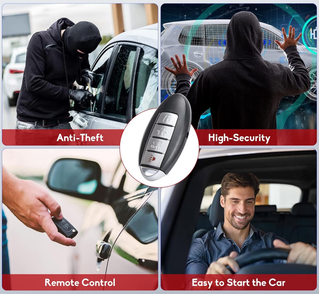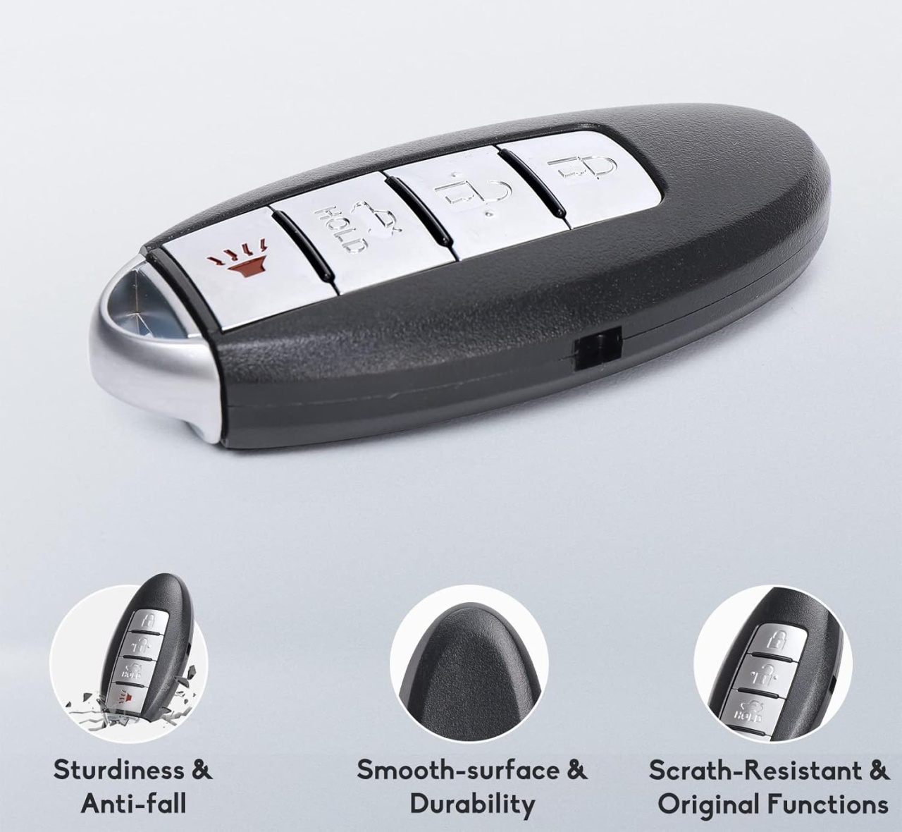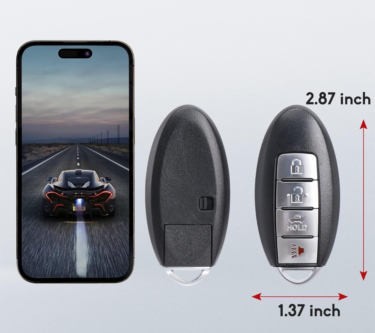 ✔ Telecomanda inteligenta tip Smart Key , cu 4 butoane si frecventa 433 MHz , compatibila cu o gama larga de modele Nissan si Infiniti dotate cu sistem de pornire fara cheie (Push Start) . ✔ Include toate componentele electronice, cip-ul si bateria preinstalata . Design identic cu cheia originala din fabrica si functionalitate completa. ✔ Coduri FCC compatibile: KR55WK48903 si KR55WK49622 . ✔ Functii disponibile: inchidere, deschidere, portbagaj si PANIC (alarma/semnalizare auto) . X Aceasta telecomanda NU este compatibila cu masini care pornesc cu cheie clasica (contact mecanic). Compatibilitate auto in Romania (modele frecvente din import SUA/Asia): Nissan: Altima (2007–2012) Maxima (2009–2014) Murano (2009–2014)* *Compatibil doar daca are FCC ID KR55WK49622 Infiniti: G25 (2011–2012) G35 (2007–2008) G37 (2008–2013) FX35 (2009–2012) FX37 (2013) FX50 (2009–2013) Q40 (2015) Q60 (2014–2016) QX70 (2014–2016) ! Verifica pe cheia originala codul FCC (KR55WK48903 sau KR55WK49622) si asigura-te ca are aceeasi forma si acelasi numar de butoane. Specificatii tehnice: Tip produs: Cheie auto inteligenta (Smart Key / Keyless Entry) Numar butoane: 4 (Inchidere, Deschidere, Portbagaj, Panic) Frecventa: 433 MHz FCCID: KR55WK48903 / KR55WK49622 Baterie: Inclusa Electronica: Inclusa Lama: Nu are insert metalic / mecanic Compatibilitate: doar cu masini cu sistem Push Start Continut pachet: 1 x telecomanda smart key cu cip si baterie (frecventa 433MHz) Atentie: Necesita programare profesionala la un lacatus auto sau dealer autorizat Nu este compatibila cu masini care pornesc prin rotirea unei chei clasice Verifica codul FCC, frecventa (433MHz) si numarul de butoane inainte de achizitie