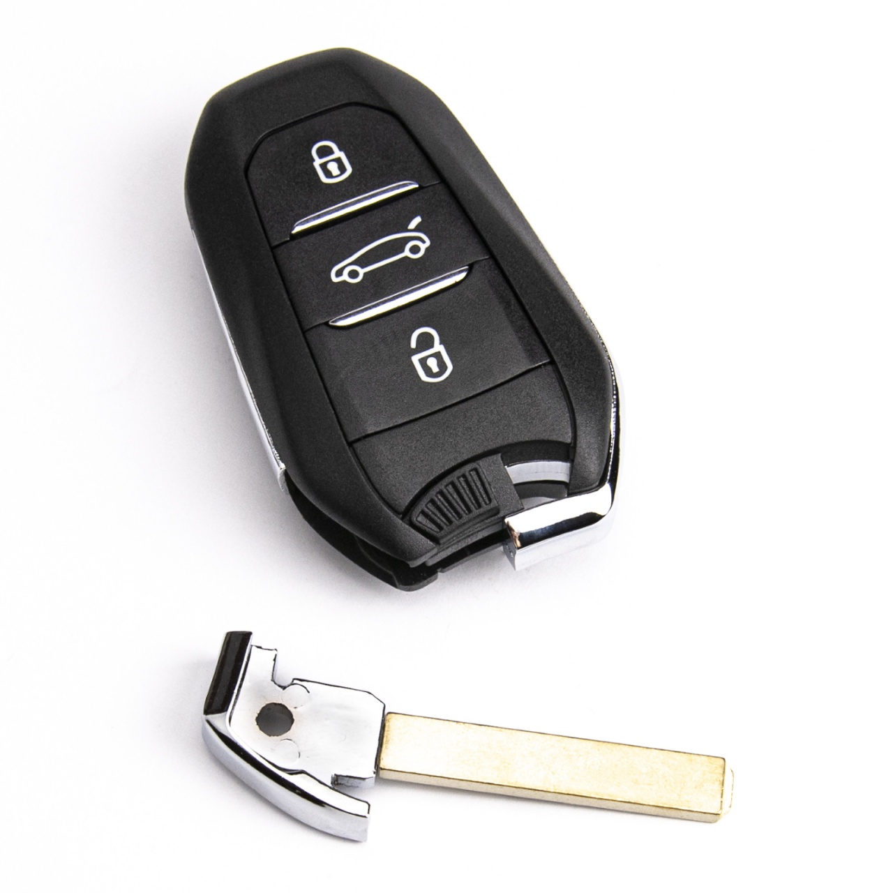 Carcasa de schimb marca Techstar , cu 3 butoane si mecanism tip briceag, compatibila cu modele Citroen care folosesc lama HU83. Ideala pentru inlocuirea carcasei vechi, uzate sau crapate, pastrand functionalitatea originala a telecomenzii. ✔️ Compatibilitate autoturisme (lama HU83) : Citroen C2 Citroen C3 Citroen C4 Citroen C5 Citroen Berlingo Citroen Jumper Citroen Jumpy Citroen Xsara Citroen Xsara Picasso Compatibila doar cu telecomenzi Citroen cu 3 butoane si lama HU83 ⚙️ Specificatii produs : Carcasa aftermarket Techstar cu 3 butoane (lock / unlock / portbagaj) Mecanism tip flip (briceag) Lama HU83 inclusa (neprelucrata) Fabricata din ABS rezistent si metal Nu contine cip sau electronica – se transfera din cheia originala ? Mod de montaj : Deschide cheia veche si scoate cipul si electronica Monteaza componentele in carcasa Techstar Lama poate fi taiata la un lacatus auto ✅ Nu necesita reprogramare ⚠️ Atentie : Nu este compatibila cu modele care folosesc lama VA2 Asigura-te ca vechea ta cheie are configuratia cu 3 butoane si lama HU83 Produsul nu include electronica sau cip ? Continut pachet : 1 x carcasa cheie auto Techstar cu 3 butoane 1 x lama HU83 (neprelucrata) ✅ Beneficii : Solutie rapida si economica pentru reparatia cheii auto Design modern, rezistenta in timp Compatibilitate perfecta cu modele Citroen pe HU83 Fabricat aftermarket – calitate garantata Techstar