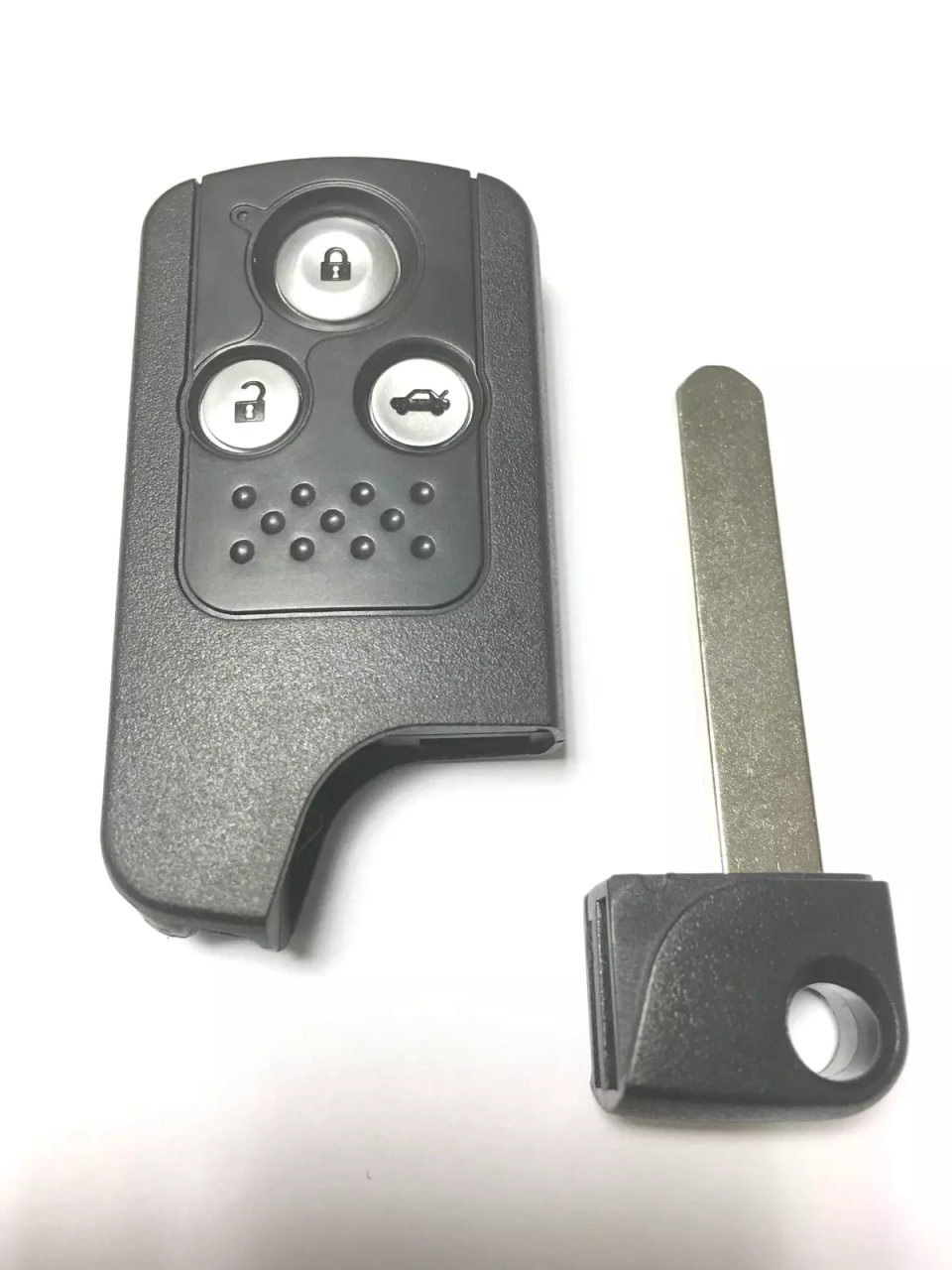 Carcasa de schimb marca Techstar , compatibila cu telecomenzile keyless proximity cu 3 butoane pentru Honda CR-V 2013–2015 . Ideala pentru repararea sau reconditionarea unei carcase uzate, cu butoane defecte sau plastic deteriorat. ✔️ Compatibilitate modele : Honda CR-V (2013, 2014, 2015) Honda Accord (2013-2015) Honda Civic (2014-2015) Honda Crosstour (2013-2015) Modele cu sistem keyless entry (proximity), cu 3 butoane ⚙️ Specificatii produs : Carcasa aftermarket Techstar cu 3 butoane (lock / unlock / portbagaj) Compatibila cu cheile proximity Honda Lama inclusa: HON66 (neprelucrata) Nu include electronica sau cip – acestea se transfera din cheia originala Material durabil: plastic ABS si elemente metalice de fixare ? Montaj simplu si rapid : Deschide carcasa veche si scoate cipul si placa electronica Monteaza-le in noua carcasa Techstar Lama HON66 poate fi taiata la un lacatus auto sau se poate transfera lama originala ✅ Nu necesita programare electronica ⚠️ Atentie : Verifica daca forma carcasei, configuratia butoanelor si lama sunt identice cu cheia ta actuala Nu este compatibila cu alte modele sau telecomenzi cu alt numar de butoane Produsul nu contine cip sau electronica – este doar carcasa de schimb ? Continut pachet : 1 x carcasa cheie auto Techstar cu 3 butoane 1 x lama HON66 (neprelucrata) ✅ Avantaje : Solutie economica pentru inlocuirea unei carcase deteriorate Compatibilitate perfecta cu Honda CR-V proximity Montaj usor, fara echipamente speciale Design identic cu cheia originala ❗ Acesta este un produs aftermarket , destinat exclusiv inlocuirii carcasei originale. Marca Honda este mentionata doar pentru a indica compatibilitatea.