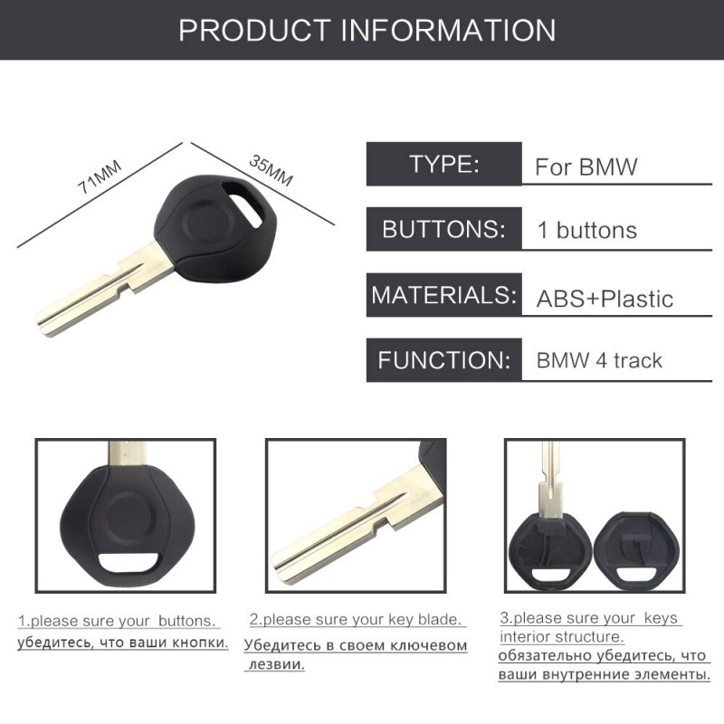 Carcasa veche s-a deteriorat? Doresti sa schimbi aspectul cheii? Atunci inlocuieste carcasa cheii cu una noua. Carcasa cheie + lamela. Simplu, transfera cipul din vechea carcasa in noua carcasa si muta/copiaza lamela de la cheia veche la un centru de chei. Asta este tot! Numar butoane: 0 Modele compatibile: BMW 3 Series 1999-2003 325ci 1999-2003 5 Series 1997-2006 6 Series 1997-2003 7 Series 1995-2002 8 Series 1995-1999 Z3 1998-2003 X5 1999-2005 318ti 1999 323i 1999-2000 323is 1999 323Ci 2000 325xi 2000-2004 325i 2001-2004 325Ci 2001-2005 328Ci 2000 328i 1999-2000 328is 1999 330i 2001-2003 330Ci 2001-2005 330xi 2001-2005 525i 2001-2004 528i 1999-2000 530i 2001-2005 545i 2004 540i 1999-2003 645Ci 2004-2005 740i 1999-2001 740iL 1999-2001 745i 2002-2005 745iL 2002-2005 750iL 1999-2001 760i 2004-2005 760Li 2003-2005 M3 1999-2003 M5 2000-2001 X3 2002-2005 Z4 2003-2005 Z8 200-2003 + Compatibil si cu modele mai noi ce folosesc acelasi timp de lama Cod Referinta: BMW-KS-01A
