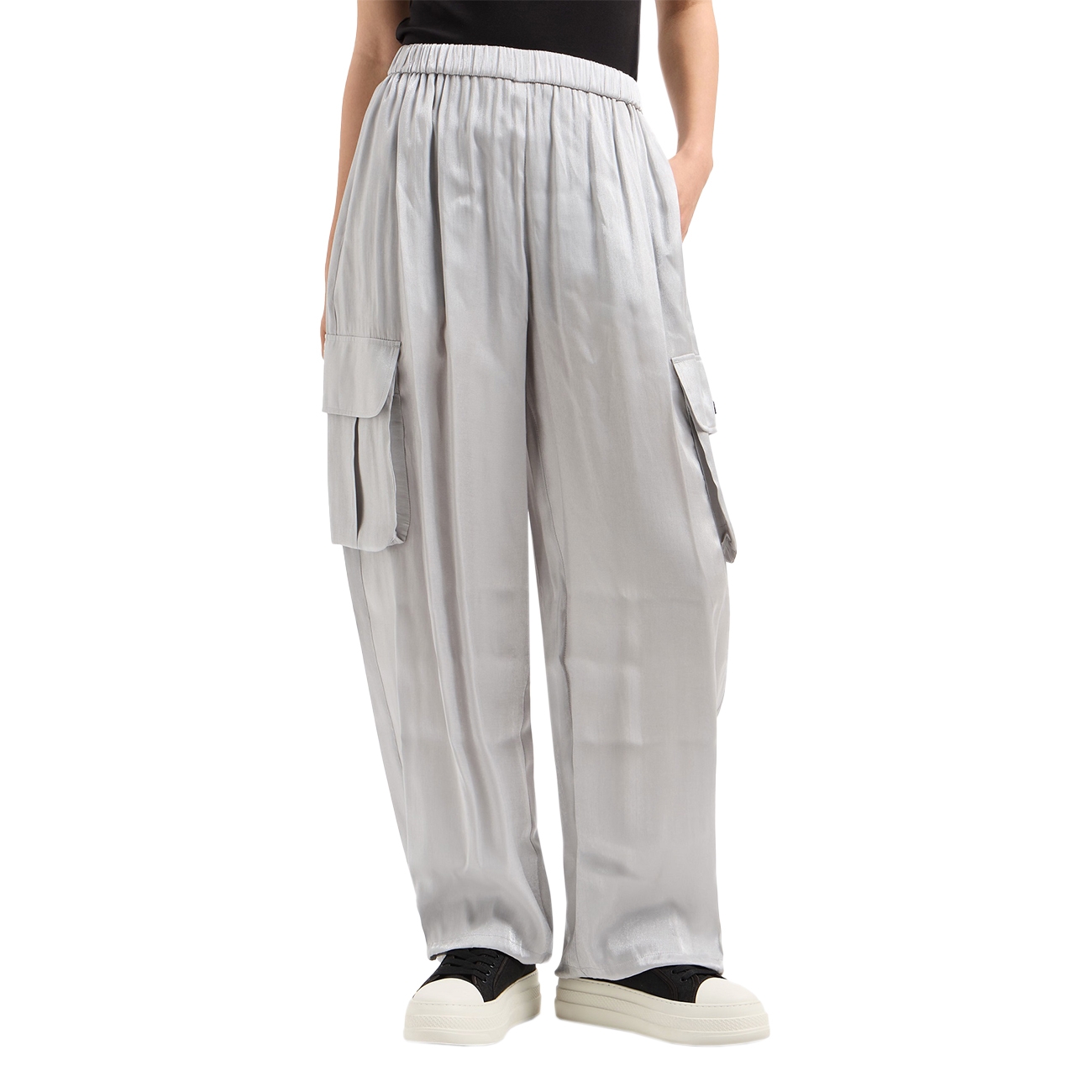 Alege o ținută cu impact vizual puternic cu acești pantaloni Armani Exchange în nuanța Mirror, cu finisaj lucios și detalii futuriste. Croiala cargo cu buzunare laterale generoase adaugă un aer utilitar, iar banda elastică în talie și baza ajustabilă cu șnur oferă confort și versatilitate. Sunt realizați dintr-un amestec de vâscoză și poliamidă, conferind fluiditate, ușurință și o strălucire sofisticată.