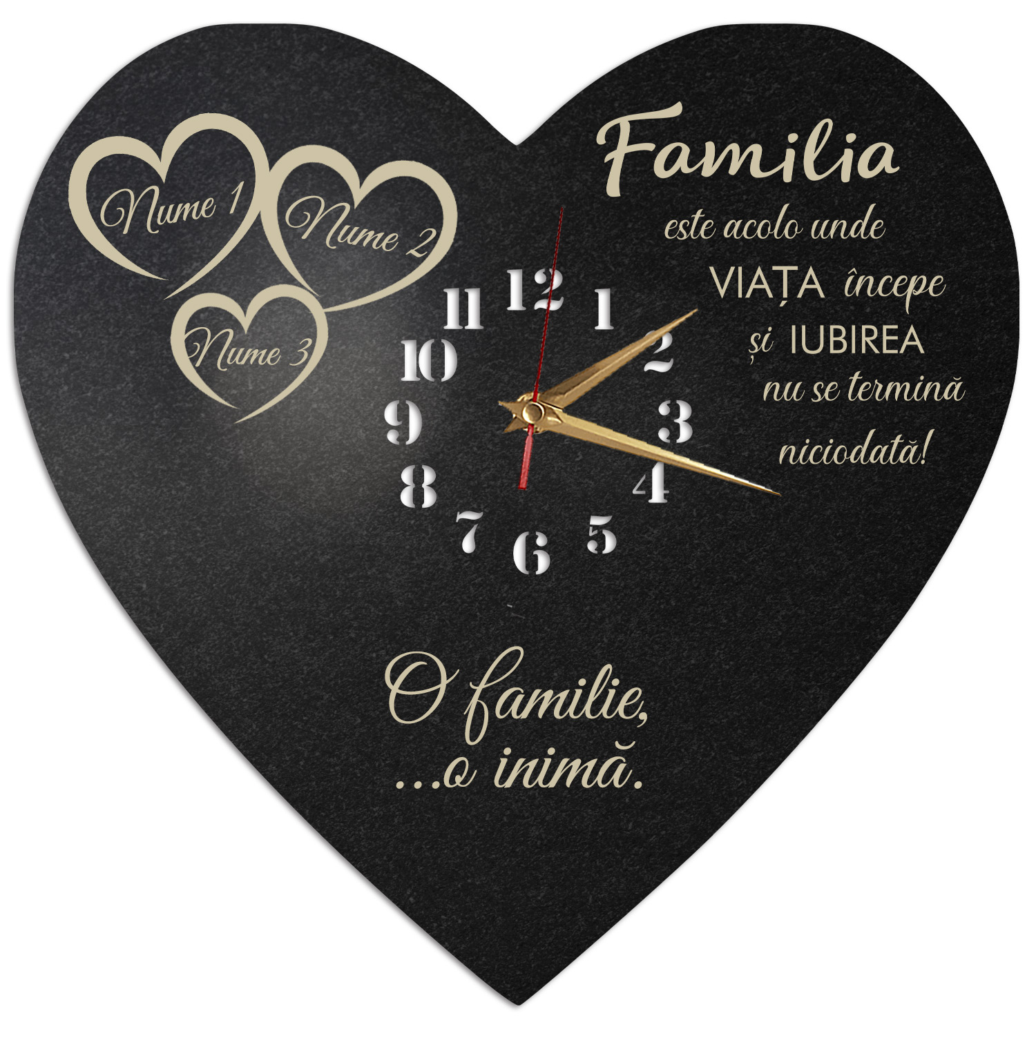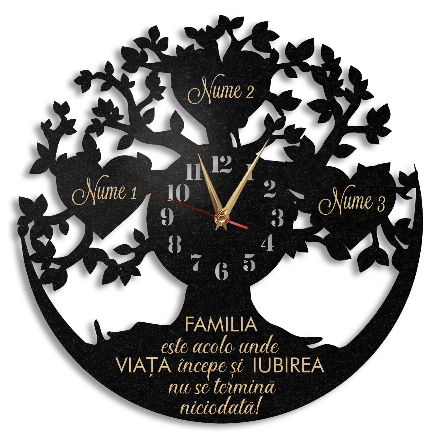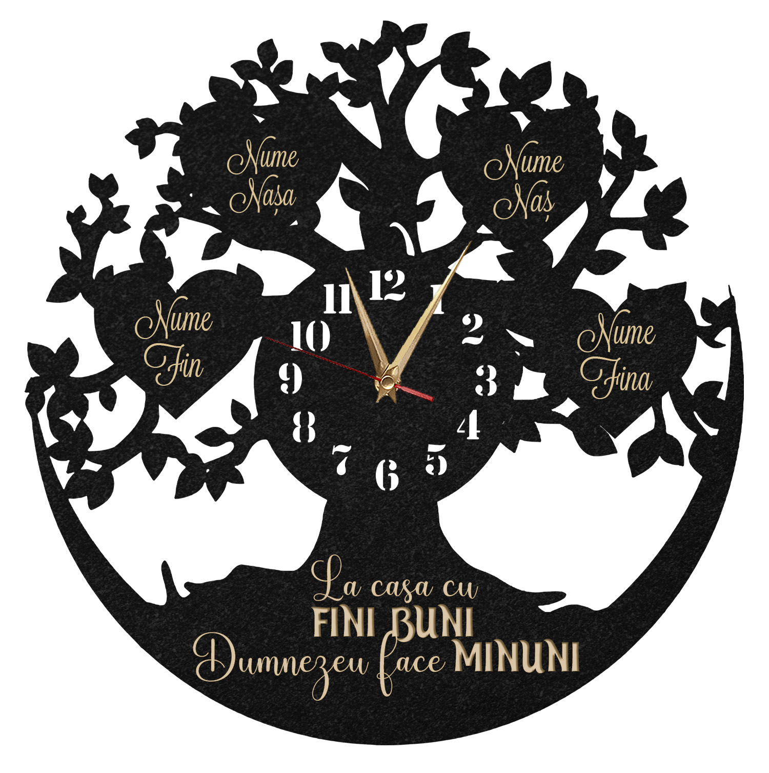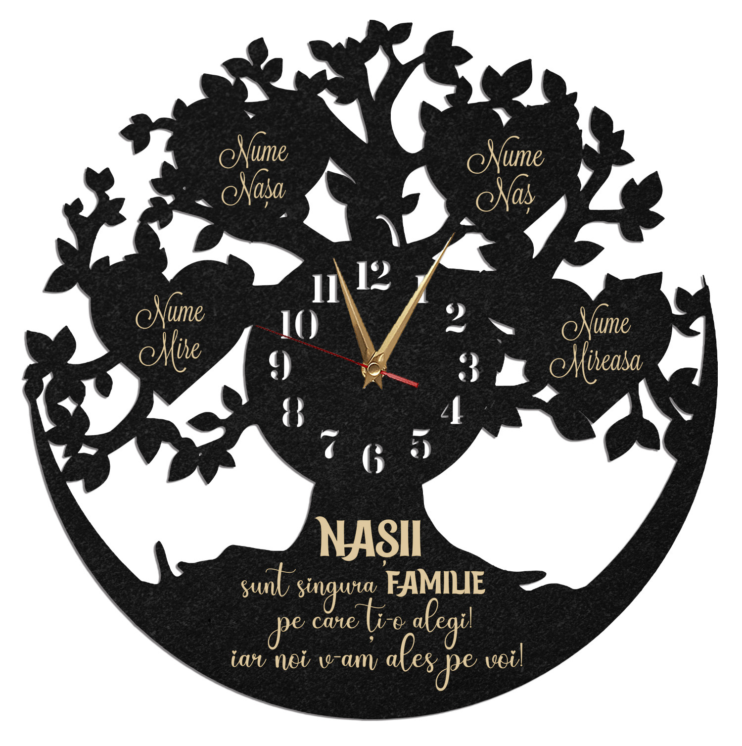 Descoperă un cadou perfect pentru a-i arăta recunoștința ta față de primarul tău preferat! Ceasul de perete personalizat Cadou Primar 01 este alegerea ideală pentru a sărbători munca și implicarea acestuia în comunitate. Cu un design elegant și personalizabil, acest ceas va aduce un plus de eleganță oricărui birou sau cameră. Este o modalitate minunată de a-i transmite primarului tău cât de mult îți pasă de eforturile sale și de impactul pe care îl are asupra locuitorilor orașului. Oferă un cadou memorabil și funcțional, care să îi amintească primarului tău de aprecierea ta în fiecare zi! Material: HDF Culoare: Negru Dimensiuni: 35 sau 45 cm, în funcție de preferințe Aspectul este unul plăcut, creativ și atrăgător pentru fiecare persoană ce-l va primi în dar. Este prevăzut cu mecanism silentios cu agățătoare care necesita o baterie AA (neinclusa in colet). Cum comand? E simplu, urmeaza pasii de mai jos: Alege dimensiunea dorita a ceasului personalizat. Mentioneaza textul personalizat care doresti sa se afiseze pe langa cel existent in poza (daca este cazul, in functie de modelul ceasului). Adauga in cos! Completeaza adresa si nr. de tel. Selecteaza metoda de plata - Numerar la livrare sau Plata online Livrarea se va face prin curier rapid, oriunde in Romania. Stai linistit! Nu platesti km suplimentari. Plaseaza comanda! Vei primi SMS atat in ziua expedierii coletului, cat si in dimineata zilei in care urmeaza sa primesti coletul.