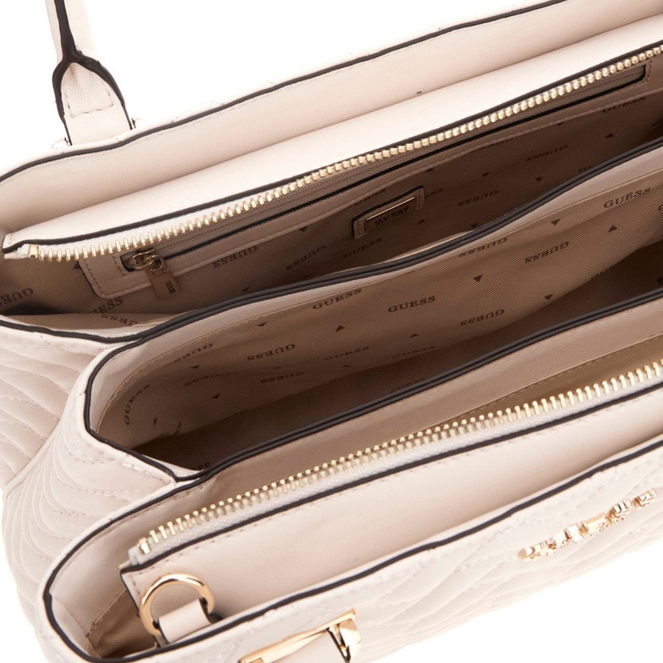 Geanta Centre Stage Abey Status de la Guess este un accesoriu sofisticat și versatil, perfect pentru un look rafinat și modern. Realizată din material sintetic de înaltă calitate, această geantă se remarcă prin textura sa matlasată în valuri și finisajul elegant. Detaliile metalice aurii și logo-ul Guess aplicat frontal oferă o notă luxoasă și distinctivă. Mânerele duble permit purtarea confortabilă în mână, iar cureaua de umăr detașabilă adaugă funcționalitate. Interiorul spațios cu închidere magnetică și compartimentare practică face din această geantă alegerea ideală pentru zilele active, în care eleganța și utilitatea merg mână în mână.