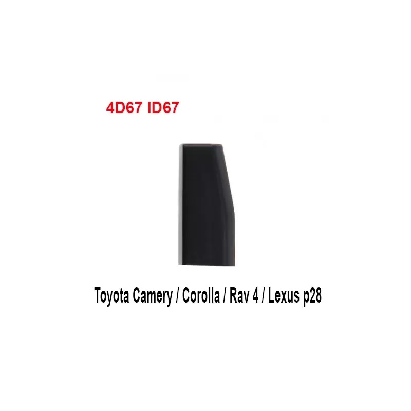 Cipul transponder 4D67 (cunoscut si ca ID67) este compatibil cu o gama larga de modele Toyota si Lexus, fiind ideal pentru realizarea de chei auto noi sau de rezerva. Acest cip blank poate fi programat cu usurinta folosind echipamente standard din service-urile auto sau atelierele de lacatuserie. Caracteristici principale: ✔️ Compatibil cu modele Toyota Corolla, Camry, RAV4, Lexus (cu P1:32) ✔️ Tip cip: 4D67 / ID67 – 80 bit ✔️ Cip blank – gata de programare ✔️ Calitate aftermarket testata Acest produs este perfect pentru ateliere auto, specialisti in programarea cheilor si tehnicieni care doresc o solutie fiabila pentru inlocuirea sau duplicarea cheilor originale. Branduri compatibile: Toyota, Lexus