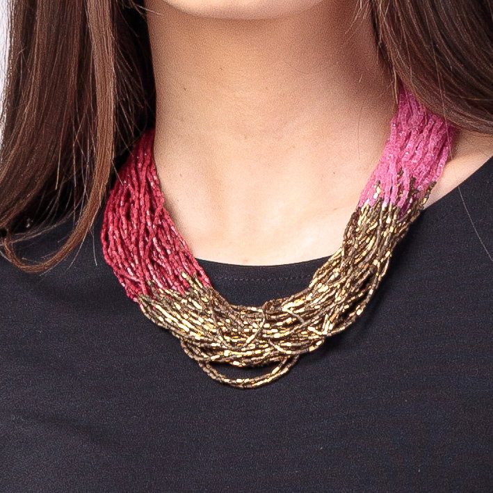 Colier decorativ cu elemente rotunde din lemn si textil intercalate Elementele rotunde sunt dispuse in ordine crescatoare de la centru 3 x 3 cm, spre extremitati 2 x 2 cm Sistem de inchidere: fara incuietoare, cu un nasture ce trece printr-o bucla Descriere dimensiuni: lungimea sirului 50 cm neajustabila Nuantele pot varia usor in realitate, in functie de lumina si setarile fiecarui ecran.
