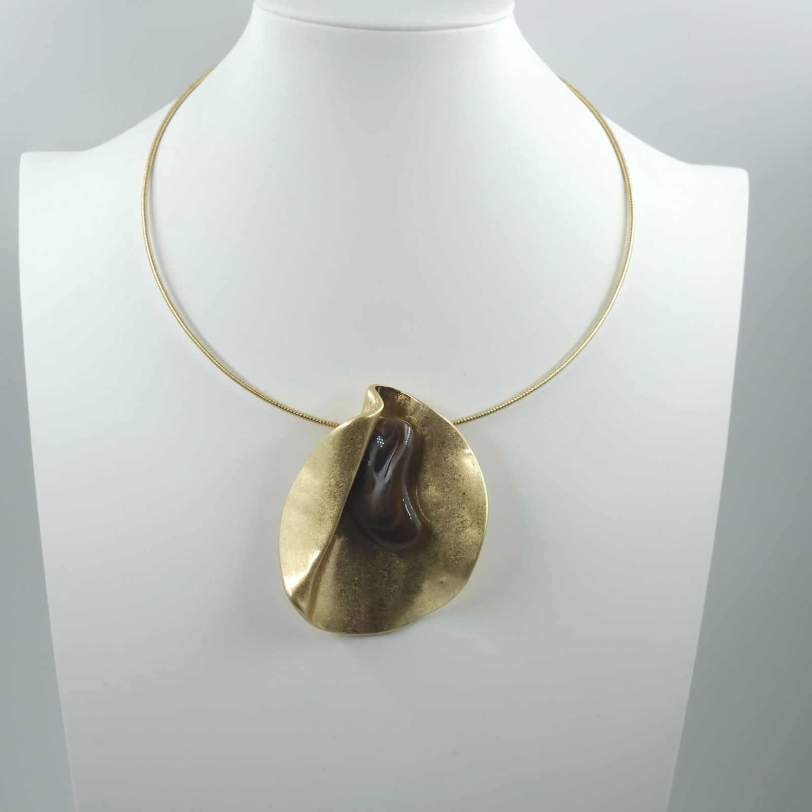 Colier bogat, decorativ, din 6 siruri inegale cu elemente de lemn colorate in auriu si lila cu aspect mat. In partea de sus se continua cu 4 snururi din piele ecologica si elemente de inchidere din metal auriu. Descriere dimensiuni: lungimea sirului cel mai scurt 56 cm, lantisor prelungitor 7 cm. Nuantele pot varia usor in realitate, in functie de lumina si setarile fiecarui ecran.