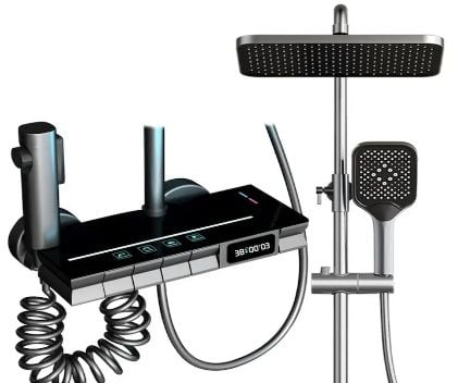 Coloană de duș smart, en-gros, cu afișaj LED Această coloană de duș inteligentă este un produs modern, practic și versatil, ideal pentru a fi vândut en-gros în magazine de articole pentru casă, supermarketuri și magazine de bricolaj. Este o alegere excelentă pentru a satisface cererea clienților care își doresc o soluție eficientă și modernă pentru baie. Caracteristici și Funcționalitate: Design: Coloana de duș are un design modern și minimalist și este fabricată din materiale durabile și sigure, permițând o utilizare pe termen lung.Versatilitate: Produsul este un sistem complet, care include un cap de duș mare, o pară de duș de mână și un panou de control cu afișaj LED. Pe afișaj se poate vedea temperatura apei. De asemenea, este ușor de utilizat, cu o simplă apăsare de buton.Vânzare B2B: Prin achiziția en-gros, retailerii pot asigura un stoc suficient pentru a satisface cererea clienților, cu un produs de calitate și funcțional.Funcționalitate: Coloana de duș este ușor de utilizat și de întreținut, permițând o utilizare rapidă și ușoară. De asemenea, este practică și funcțională, permițând o utilizare fără efort.