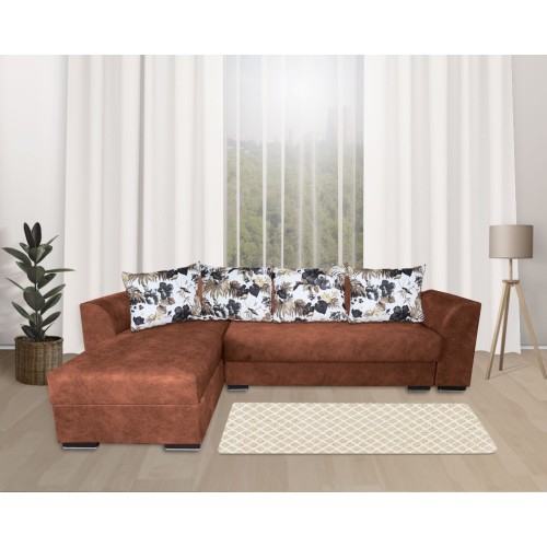 Coltarul Lindo este un coltar modern conceput pentru un stil de viata activ fiind foarte usor de extins si de strans. Coltarul Lindo este extensibil putand fi utilizat zilnic atat ca si coltar pentru petrecerea timpului liber cat si ca un pat generos pe timpul noptii. Suprafata de dormit este 140 * 215 cm. Coltarul Lindo are saltele cu plasa de arcuri (tip Relaxa) si burete de densitate mare pentru o rezistenta sporita in timp, iar datorita suprafetei plane care se formeaza atunci cand se extinde asigura un somn odihnitor pe timpul noptii. Atat coltarul cat si pernele sunt tapitate cu stofa. Coltarul Lindo are doua lazi de depozitare generoase foarte practice atat pentru lenjeria de pat, cat si pentru diverse obiecte pe care le folositi rar. Sezutul in varianta stransa are o latime generoasa de 70 cm si poate fi folosit de o persoana in timpul zilei pentru un pui de somn fara a mai fi nevoie sa extindeti Coltarul. Coltarul Lindo are 4 perne pufoase foarte utile pentru o sedere cat mai confortabila pe coltar, dar si pentru o pata de culoare. Coltarul Lindo este foarte usor de montat avand elemente de cuplare rapide. Coltarul Lindo este prevazut cu un peretar care ramane la perete atunci cand coltarul este extins si este folosit pentru dormit. Peretarul protejeaza peretele si asigura un confort sporit pentru persoana care va dormi la perete. Dimensiuni coltar Lindo strans: Lungime: 2640 mm Adancime: 1700 mm Inaltime: 720 mm Suprafata de dormitor coltar Lindo: 1400 x 2150 mm