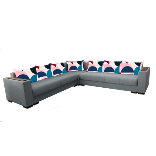 Coltarul Solis MAX 3+3 este un coltar modern conceput pentru un stil de viata activ fiind foarte usor de extins si de strans. Coltarul Solis MAX 3+3 este extensibil putand fi utilizat zilnic atat ca si coltar pentru petrecerea timpului liber cat si ca un pat generos pe timpul noptii. Se pot extinde ambele parti pe rand. Suprafata de dormit este 140 * 215 cm. Coltarul Solis MAX 3+3 are saltele cu plasa de arcuri (tip Relaxa) si burete de densitate mare pentru o rezistenta sporita in timp, iar datorita suprafetei plane care se formeaza atunci cand se extinde asigura un somn odihnitor pe timpul noptii. Atat coltarul cat si pernele sunt tapitate cu stofa. Coltarul Solis MAX 3+3 are doua lazi de depozitare generoase foarte practice atat pentru lenjeria de pat, cat si pentru diverse obiecte pe care le folositi rar. Sezutul in varianta stransa are o latime generoasa de 70 cm si poate fi folosit de o persoana in timpul zilei pentru un pui de somn fara a mai fi nevoie sa extindeti Coltarul. Coltarul Solis MAX 3+3 are 8 perne pufoase foarte utile pentru o sedere cat mai confortabila pe coltar, dar si pentru o pata de culoare. Coltarul Solis MAX 3+3 este foarte usor de montat avand elemente de cuplare rapide. Coltarul Solis MAX 3+3 este prevazut cu un peretar care ramane la perete atunci cand coltarul este extins si este folosit pentru dormit. Peretarul protejeaza peretele si asigura un confort sporit pentru persoana care va dormi la perete. Cusaturile de pe sezutul coltarului dau o eleganta aparte produsului. Pe bratele coltarului se afla ornamente din MDF wenge care pot fi folosite ca suport pentru pahare. Dimensiuni coltar Solis MAX 3+3 strans: Lungime: 3081 mm Adancime: 3081 mm Inaltime: 720 mm Suprafata de dormitor coltar Solis MAX 3+3: 1400 x 2150 mm