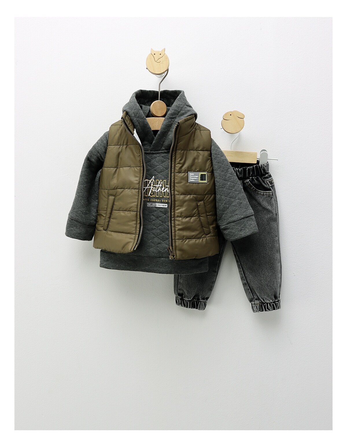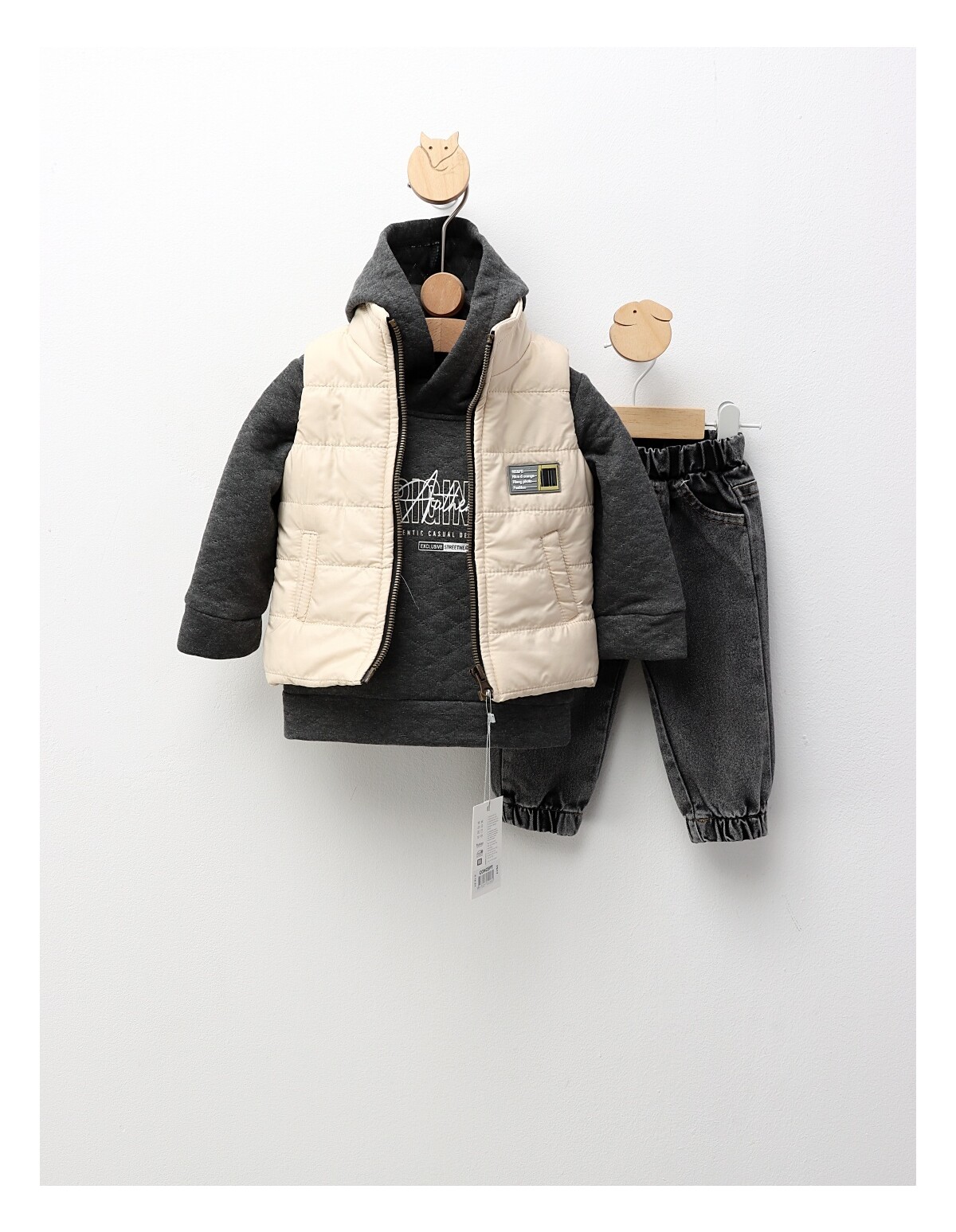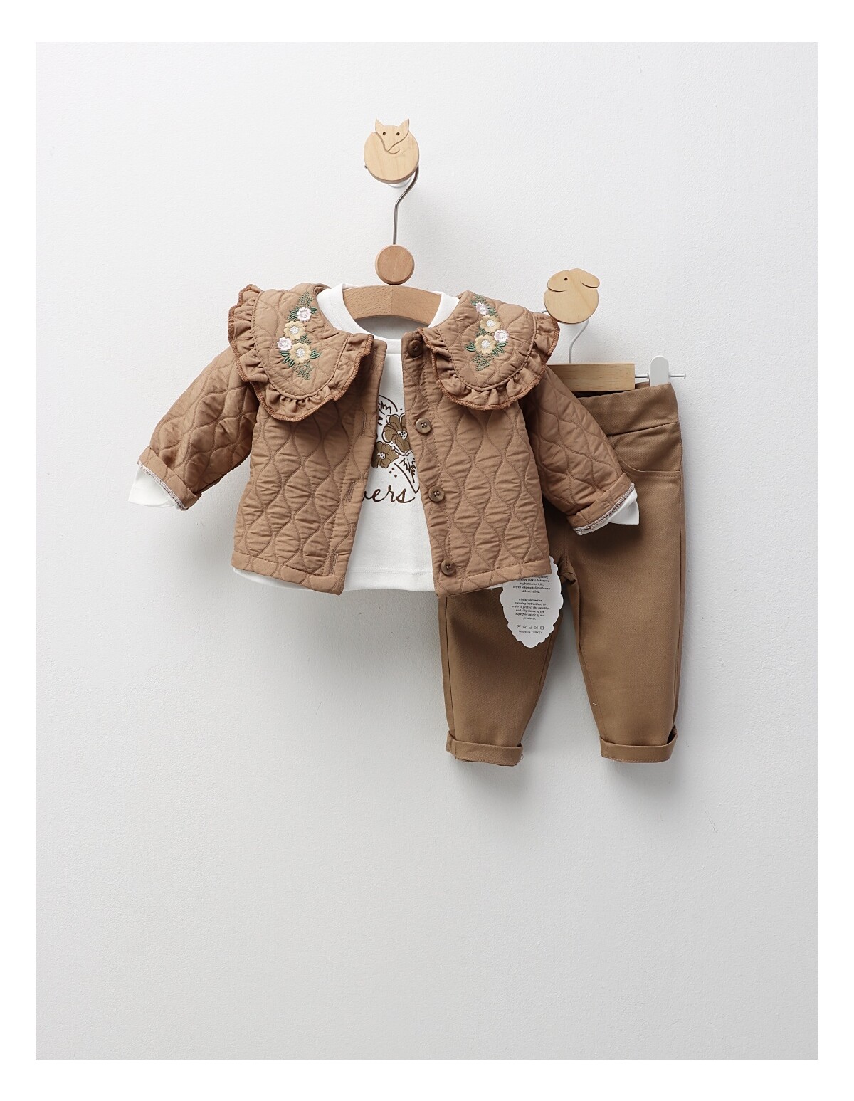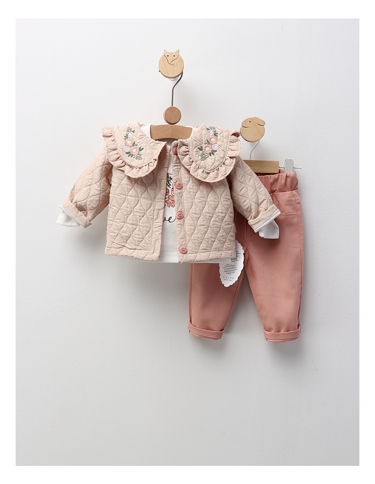 Îmbracă-ți băiețelul în acest compleu jucăuș și confortabil, perfect pentru micii aventurieri! Setul include o bluză drăgălașă, decorată cu un imprimeu captivant cu astronaut, care va stimula imaginația și curiozitatea copilului tău. Pantalonii sunt prevăzuți cu elastic în talie pentru o potrivire lejeră și comodă, ideală pentru joacă și explorare. Fabricat dintr-un material de calitate, compus din 95% bumbac și 5% licra, acest compleu asigură confort pe pielea delicată a băiețelului tău. Disponibil în mărimile de la 9 la 18 luni, acest set este alegerea ideală pentru a adăuga un strop de distracție garderobei micuțului tău! Recomandam achizitionarea cu un numar mai mare la acest produs.