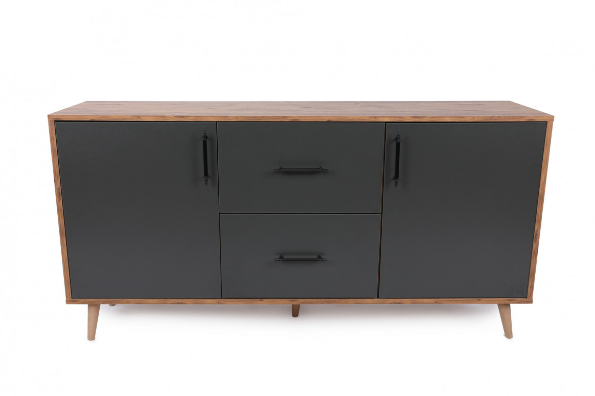 PAL Melaminat Grosime: 18 mm Glisiere telescopice pentru sertare Picioare din lemn Latime: 160 cm Inaltime: 77 cm Adancime: 40 cm Dimensiune sertar: Latime: 53 cm Inaltime: 30 cm Adancime: 40 cm 2 sertare Rafturi numeroase Poate fi fixat pe perete Ambalaj - Numar pachete:2 144 x 44 x 15 cm / 27 kg (1 Piesa) 65 x 54 x 12 cm / 9 kg (1 Piesa)