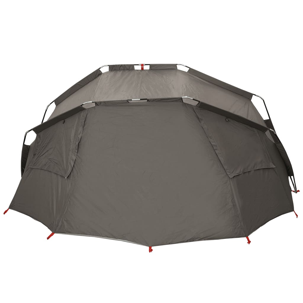 Acest cort de pescuit este perfect pentru a crea umbra si protectie impotriva razelor UV daunatoare ale soarelui, in timpul pescuitului. Design complet impermeabil: Acest cort de camping, realizat din poliester cu un strat de PU, este impermeabil si rezistent la vant. Cusaturile lipite previn in mod eficient infiltrarea apei de ploaie, in timp ce folia de sol rezistenta ajuta la mentinerea unui interior uscat si confortabil. Acces usor: Usa cu fermoar permite accesul usor. Il puteti rula si fixa cu elementele de fixare a usii. De asemenea, permite patrunderea aerului si ofera lumina naturala ampla. Spatiu suplimentar de depozitare: Buzunarul de depozitare este convenabil pentru a va pastra organizate si usor accesibile telefonul, cheile sau alte obiecte mici. Usor si portabil: Designul pliabil si usor va permite sa impachetati cu usurinta cortul si sa-l depozitati in geanta de transport inclusa, pentru un transport usor. Configurare si demontare usoara: Montarea si demontarea cortului este usoara, datorita stalpilor din fibra de sticla, extrem de flexibili si usori, si a sistemului convenabil de conectare prin pin si inel. Avertisment:Tineti orice flacari si surse de caldura departe de acest material textil.Culoare: GriMaterial: Poliester 185T cu acoperire PUDimensiuni totale: 332 x 284 x 147 cm (L x l x i)Dimensiuni pachet: 57 x 15 x 15 cm (L x l x i)Capacitate de dormit: 5 persoaneGreutate: 6,25 kgTip cort: Cort de pescuit, cort de campingNumar de dormitoare: 1Numar de usi: 1Cu acces dublu cu fermoarAsamblare necesara: DaPachetul de livrare contine:1 x Cort1 x Geanta de transport