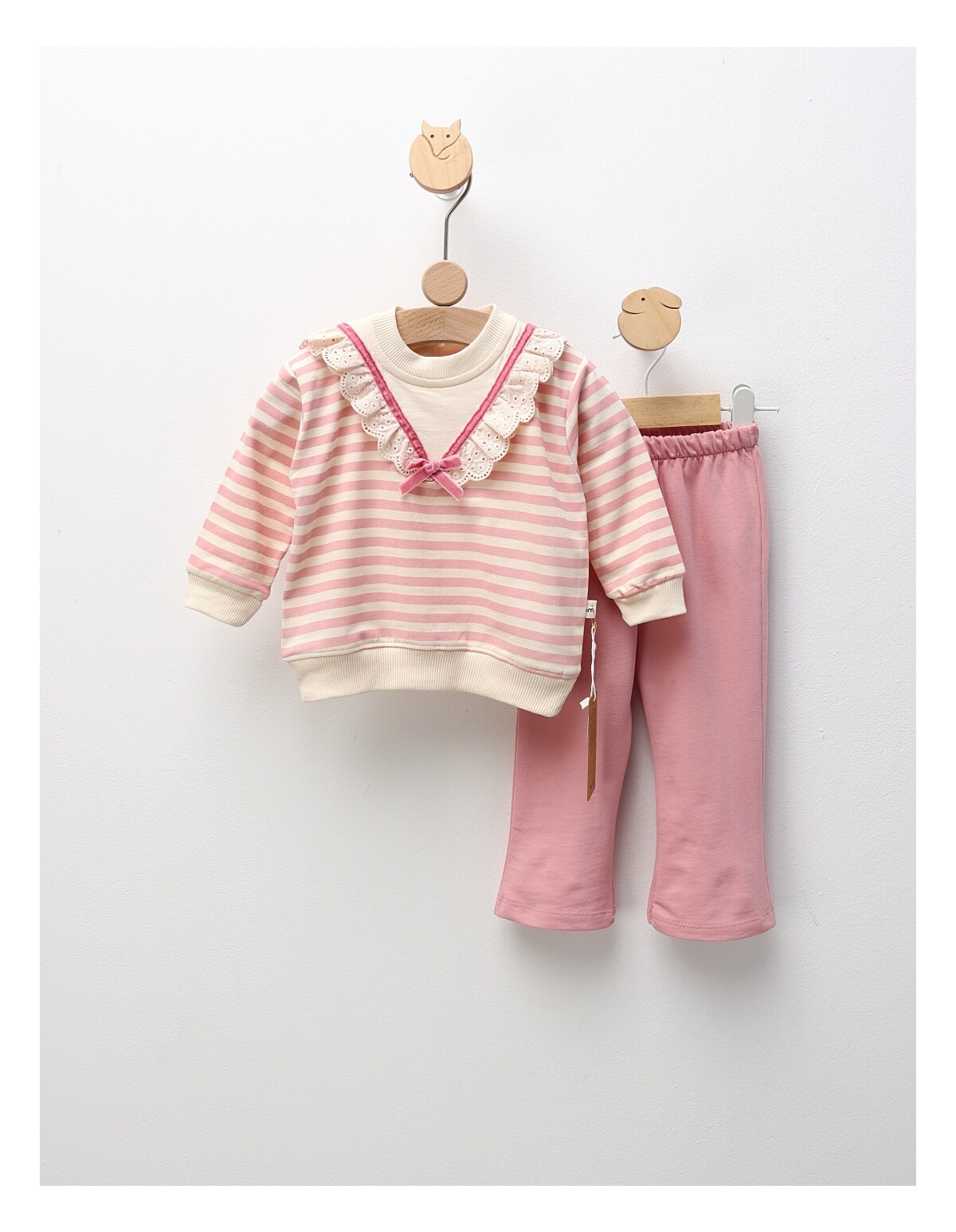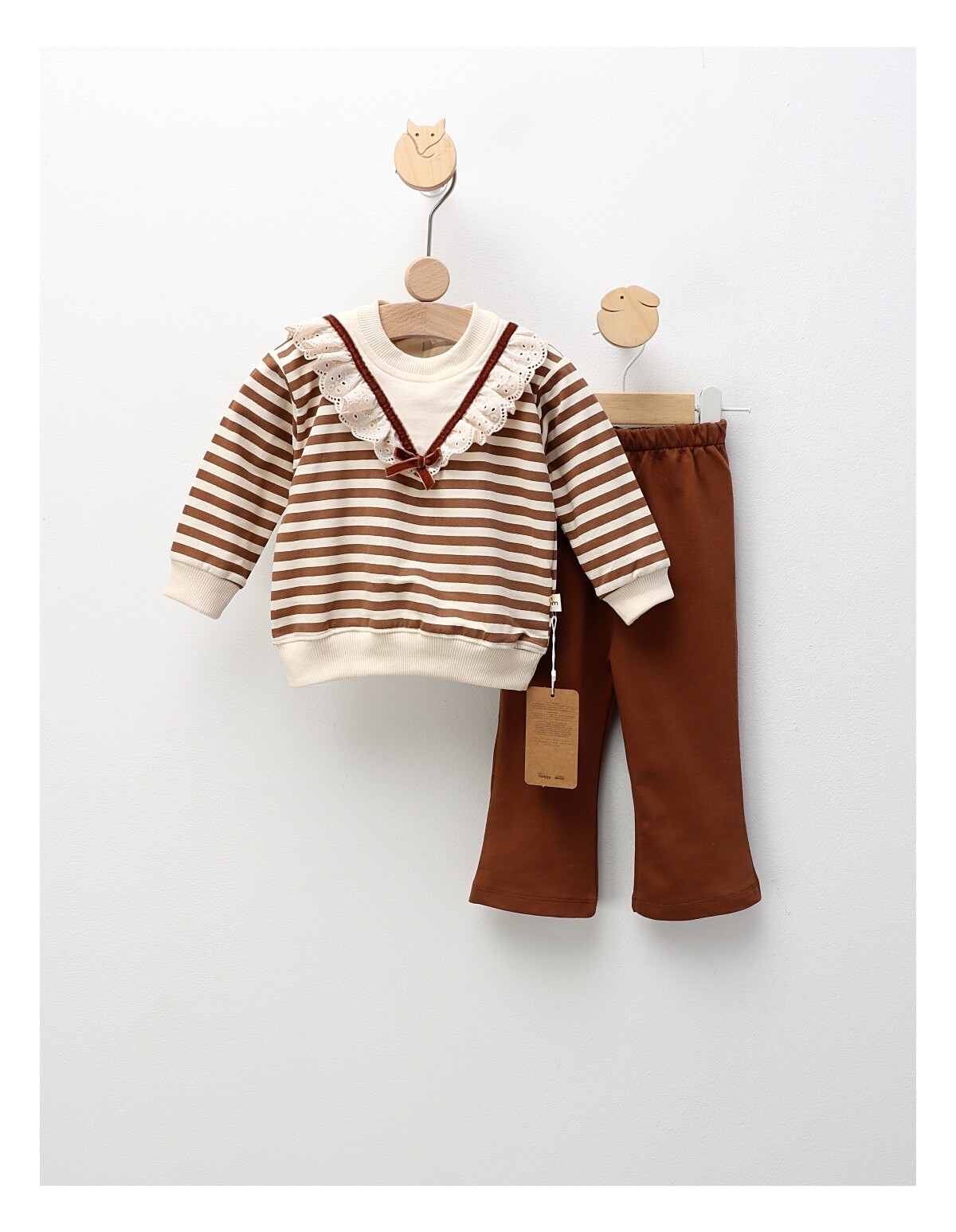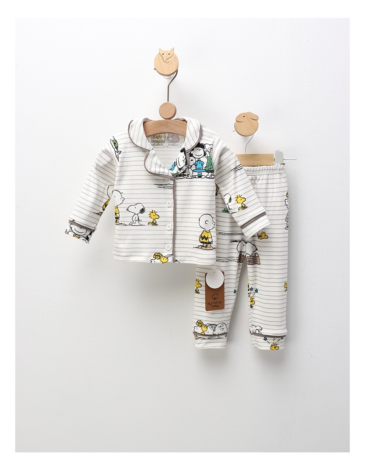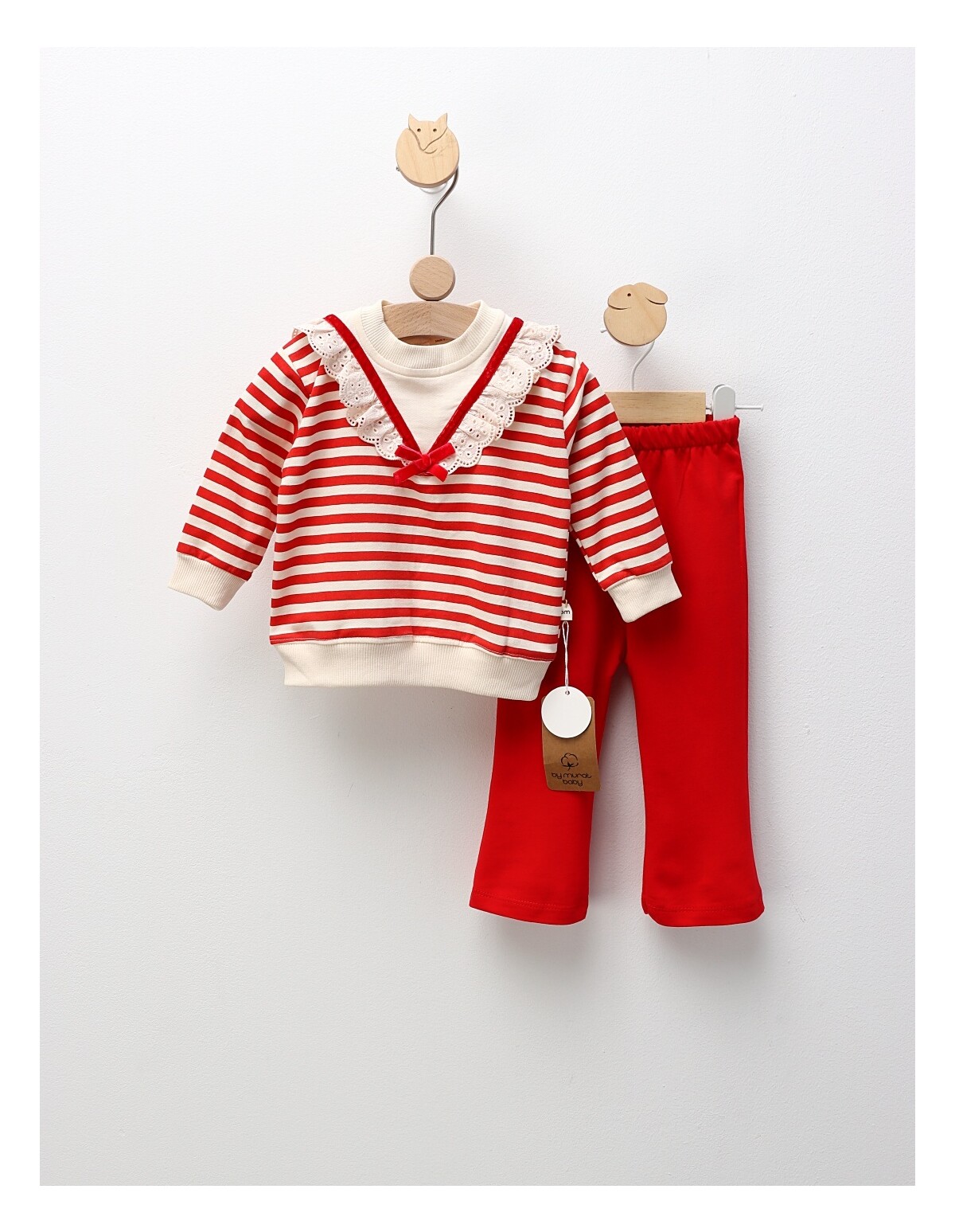 Îmbracă-ți băiețelul în acest costumas elegant și adorabil, perfect pentru orice ocazie specială! Setul include o salopetă cu bretele, care oferă un aspect stylish și confortabil. Bluzita asortată, echipată cu un papion drăgălaș, adaugă o notă de sofisticare și rafinament. Băscuța completează perfect look-ul, fiind un detaliu adorabil care va face ca micuțul tău să iasă în evidență. Confeționat din 100% bumbac de calitate superioară, acest costumas asigură o senzație plăcută și respirabilitate pentru pielea delicată a bebelușului. Disponibil în mărimile de la 3 la 12 luni, acest set este alegerea ideală pentru a transforma fiecare eveniment într-o experiență memorabilă!