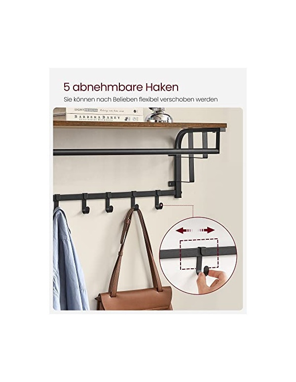 ••Specificatii: ••Culoare: Maro Rustic, Negru ••Material: Metal ••Dimensiuni: 30 x 80 x 27 cm (D x W x H) ••Greutate: 3.8 kg ••Pachetul contine:1 x suport de perete pentru haine •1 x geantă pentru accesorii •1 x instrucțiuni
