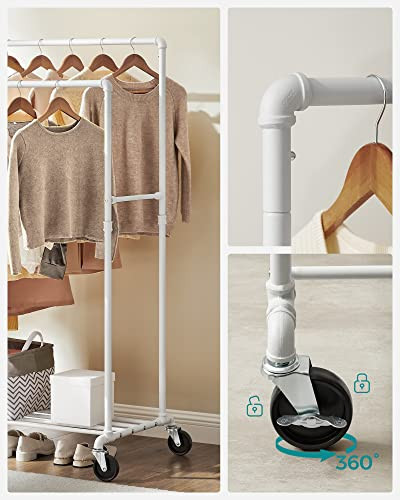 Stil industrial elegant: Indiferent daca aveti un apartament rustic cool sau o casa minimalista, aceasta bara de haine la moda de inspiratie industriala va fi o piesa de declaratie care va arata hainele frumoase si extinde depozitarea in dormitor sau spalatorie.Robust si rezistent: tuburile din otel premium asigura o rezistenta si o stabilitate superioare. Jachete de iarna sau rochii de cocktail sic, indiferent ce aveti, aceasta bara de haine rezistenta le poate tine pe toate pana la o capacitate de greutate totala de 110 kgUsor de mutat sau de ramas: Cele 4 roti universale de calitate ale acestui suport de haine ofera mobilitate fara efort dintr-o locatie in alta. Pentru a-l pastra pe loc? Sigur! 2 dintre aceste roti au frane pentru a face acest lucruO multime de spatiu de depozitare: Atarnati-va hainele pe cele 2 sine de agatat care sunt la 44 cm distanta pentru a gasi mai usor ceea ce aveti nevoie, esarfele si cravatele pe barele transversale din mijloc si puneti-va pantofii sau gentile pe raftul de jos - totul isi are locul aici!Ce primesti: O bara metalica dubla pentru haine pe roti pentru a va pastra hainele si accesoriile organizate si usor de accesat, precum si piese numerotate si instructiuni clare pentru o asamblare usoara.