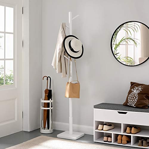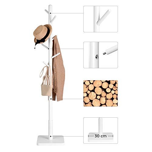 SIMPLITATE MODERNA? DA, TE ROG! Uneori, mai putin inseamna mai mult (de fapt, de cele mai multe ori), iar acest cuier se remarca prin linii curate si modernitate. Fie ca este amplasat in holul de intrare, in birou sau in dormitor, economiseste spatiu pe podea, oferind in acelasi timp o prezenta linistitoare DE ASEMENEA PENTRU CEI MICI: Cu 8 cuiere rotunjite la diferite inaltimi, acest suport pentru haine ofera un spatiu adecvat pentru haine si genti pentru a evita suprapunerea; de asemenea, este ideal pentru ca toata lumea din familie sa il foloseasca - chiar si cei mai mici se vor bucura sa-si agate hainele. PLIN DE PUTERE: Nimeni nu isi doreste un cuier care sa cada in momentul in care va puneti haina pe el. Proiectat cu gandul la stabilitate si robustete, un stalp din lemn masiv de cauciuc si o baza patrata de 30 x 30 cm sustin lucrurile intregii familii fara sa se clatine TREABA FACUTA IN CATEVA MINUTE! Nu va pricepeti la lucru manual? Nu trebuie sa fiti. Cu piese numerotate, instructiuni clare si fara a fi nevoie de unelte, acest cuier va fi gata sa va imbratiseze obiectele dupa doar 10 minute! MAI SUNT SI ALTELE: Cele 8 brate rotunjite si lacul neted confera acestui cuier autoportant un finisaj neted care nu numai ca impiedica ruperea sau deteriorarea hainelor dvs., dar ii confera un aspect grozav in casa dvs. pentru multi ani de acum incolo.