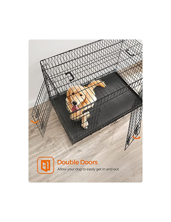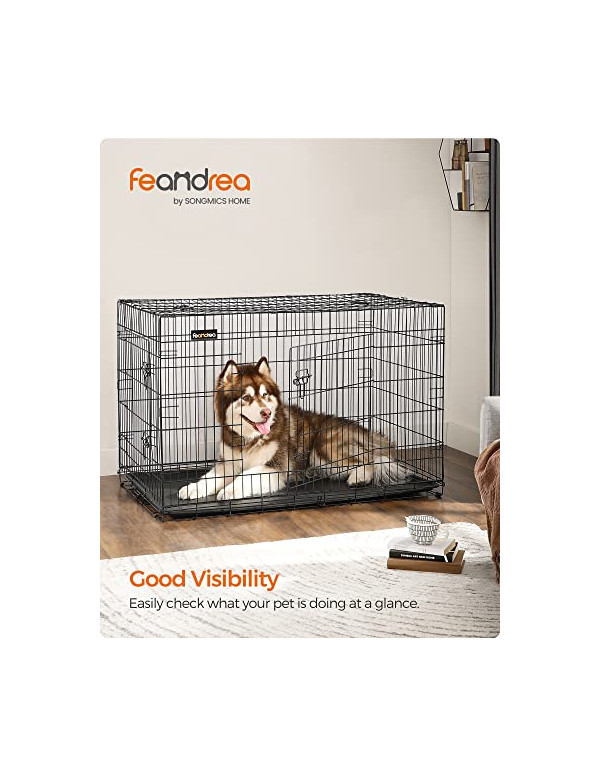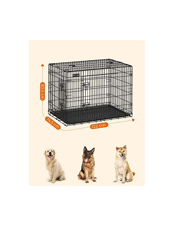 •Specificatii: •Material: Metal •Culoare: Negru (PPD48H) •Dimensiunea totala: 122 x 76 x 81 cm (W x D x H) •Greutatea net: 14 kg •Pachetul contine:1 x Cușcă pentru câini1 x Instrucțiuni (EN, DE, FR, ES, IT)