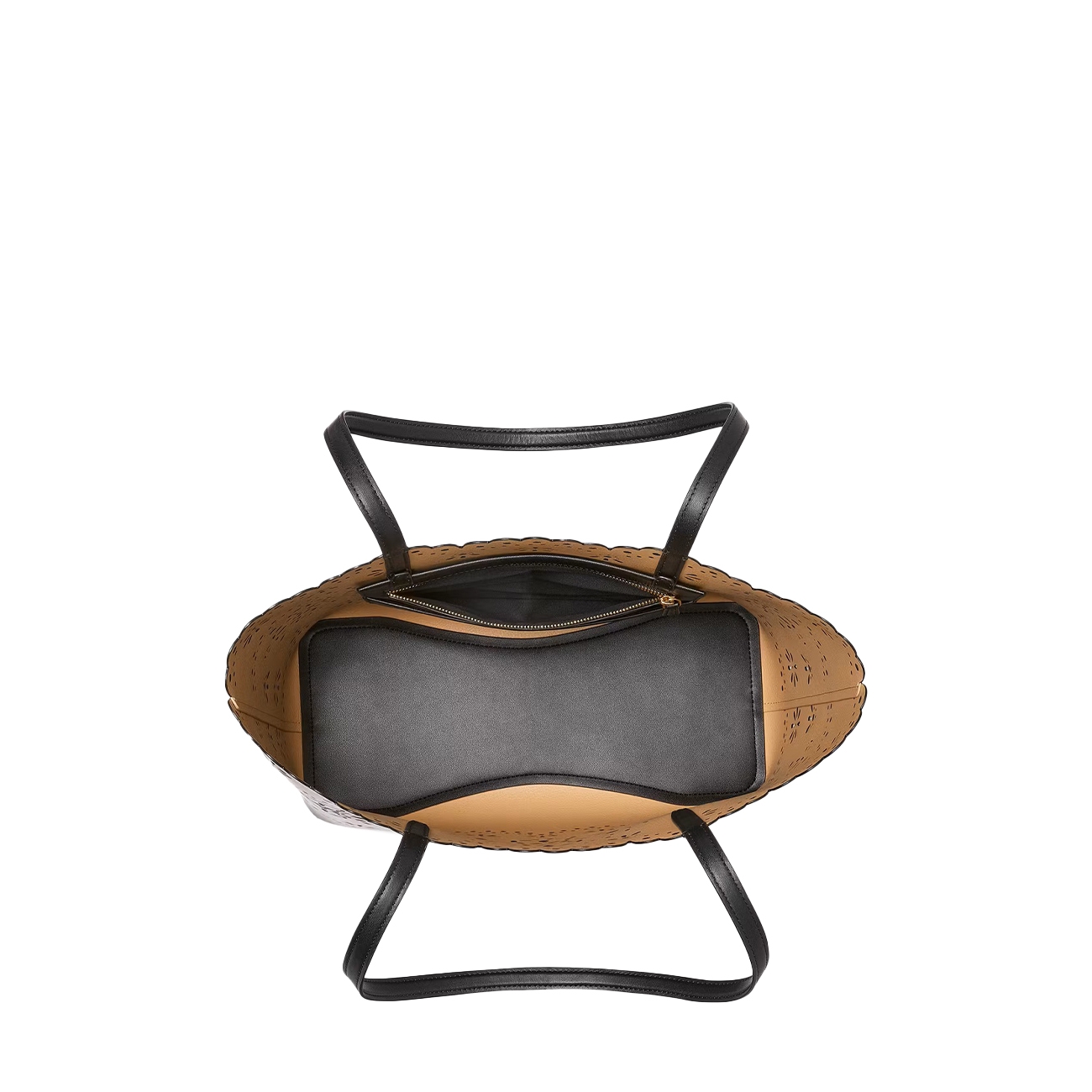 Kate Spade este un brand care s-a lansat în anul 1993 cu șase modele de genți, dar care în prezent oferă o gamă largă de produse precum articole vestimentare, încălțăminte, bijuterii și articole pentru decorarea locuinței. Așa cum îi spune și numele, această geantă Do It All Tote este gata să te însoțească în orice aventură urbană – de la dimineți grăbite la birou până la întâlniri relaxate după-amiaza. Realizată din piele de calitate superioară, are o textură aparte și un design floral perforat în formă de Spade, semnătura brandului.