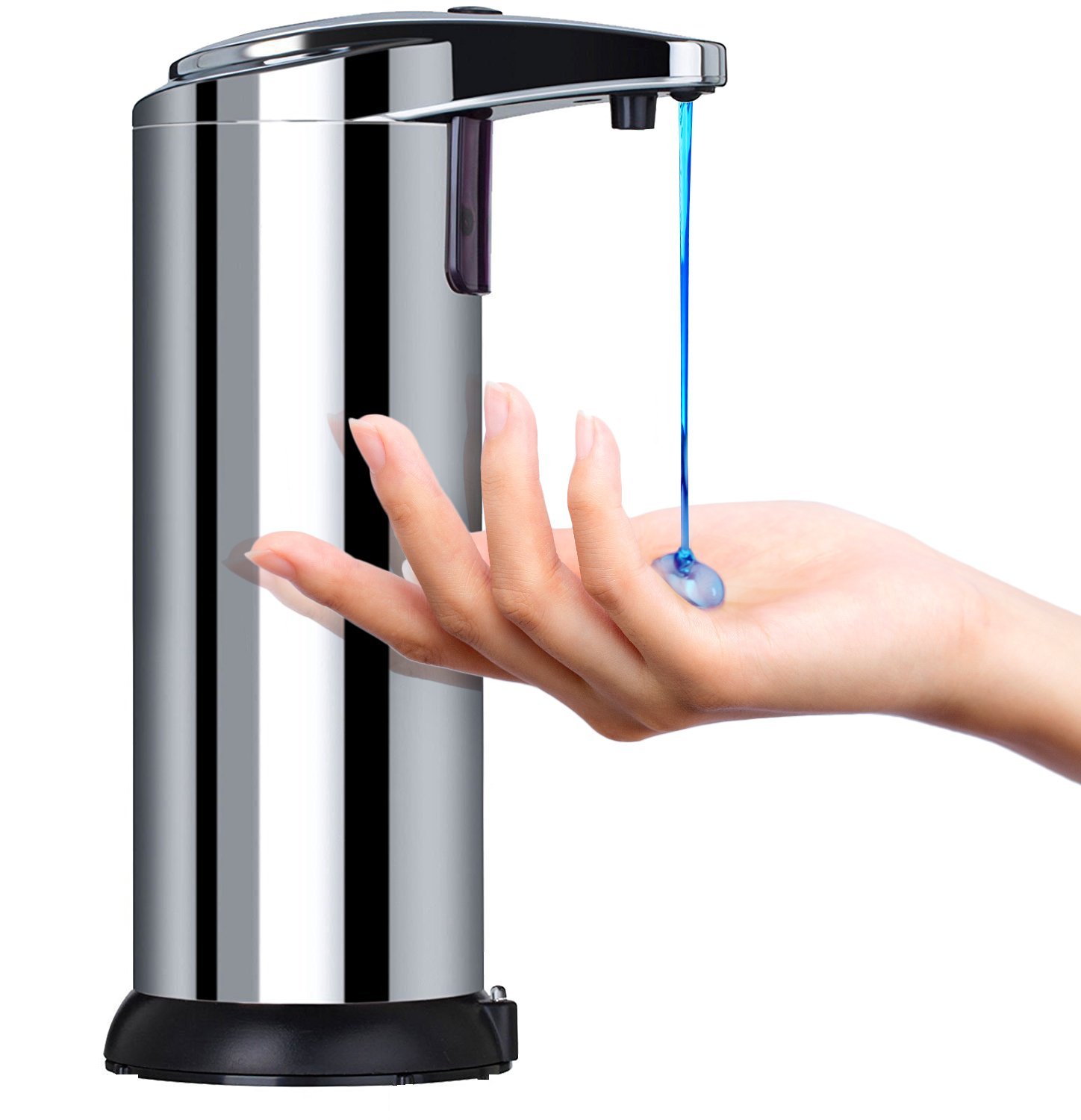 Dozator metalic de sapun cu senzor de miscare dozator de sapun din metal, nichelat, calitate premium, cu senzor de miscare functioneaza cu 4 baterii AAA - nu sunt incluse in pachet compatibil cu toate tipurile de sapun lichid (fata, maini, detergent de vase, etc) sapunul se introduce in dozator prin partea de sus, prin desfacerea capacului greutate aproximativa: 330 grame dimensiuni 18.2 x 10.7 x 7.3 cm