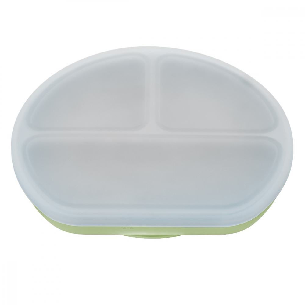 Farfurie compartimentata din silicon cu ventuza si capac AppeKids Raw Green