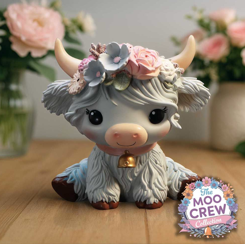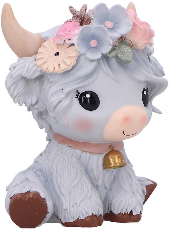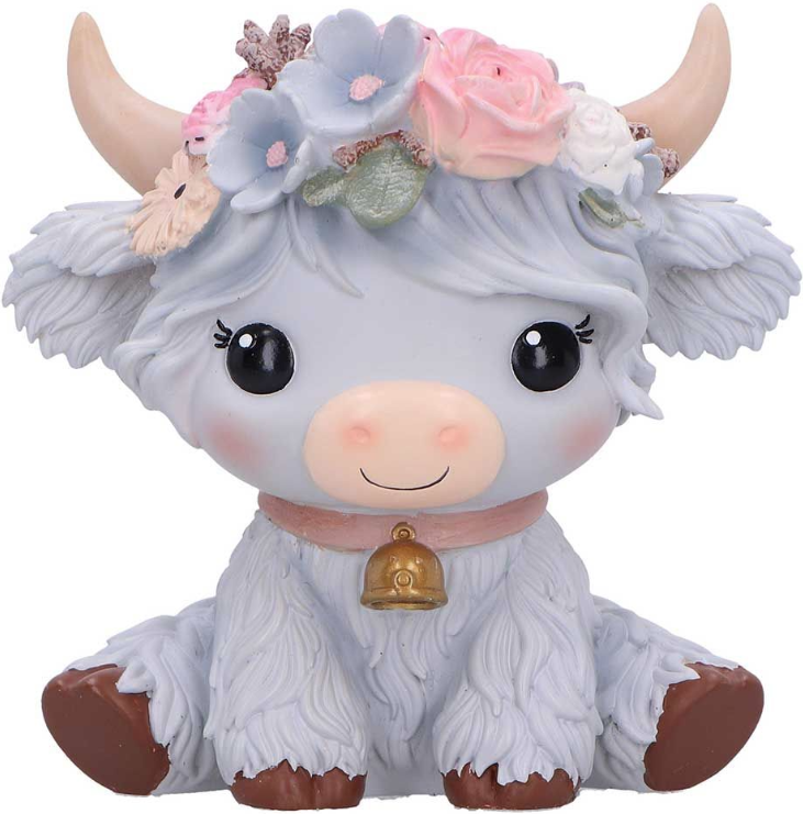 O figurina de 10,5 cm reprezentand o vaca gri jucausa, conceputa pentru a adauga o nota subtila, dar adorabila, oricarei camere.Un finisaj gri moale, flori delicate care ii impodobesc coroana , plina de caracter si farmec.Perfect pentru colectionarii de figurine cu animale, fanii decorului nonconformist si cumparatorii de cadouri care cauta ceva unic.